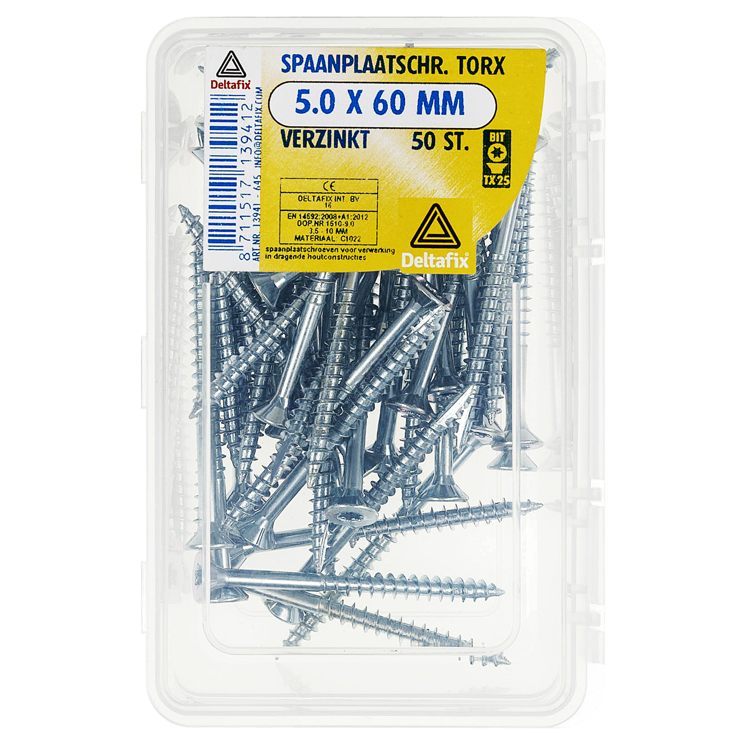 Verzinkt stalen spaanplaatschroeven met platverzonken torxkop zijn uitermate geschikt voor het bevestigen van hout- en plaatmateriaal. De grove winding en scherpe punt met snijgleuf zorgen ervoor dat de schroef makkelijk in het hout draait, voorboren is daarom vaak niet nodig. Door de platte kop met freesribben verzinkt de schroef in het materiaal.-