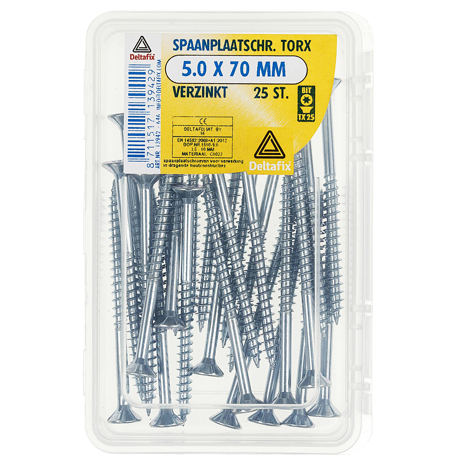 Verzinkt stalen spaanplaatschroeven met platverzonken torxkop zijn uitermate geschikt voor het bevestigen van hout- en plaatmateriaal. De grove winding en scherpe punt met snijgleuf zorgen ervoor dat de schroef makkelijk in het hout draait, voorboren is daarom vaak niet nodig. Door de platte kop met freesribben verzinkt de schroef in het materiaal.-