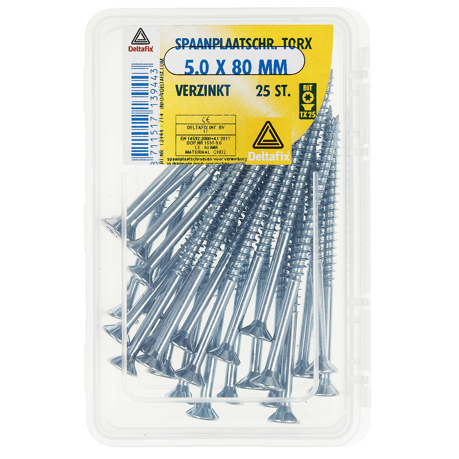 Verzinkt stalen spaanplaatschroeven met platverzonken torxkop zijn uitermate geschikt voor het bevestigen van hout- en plaatmateriaal. De grove winding en scherpe punt met snijgleuf zorgen ervoor dat de schroef makkelijk in het hout draait, voorboren is daarom vaak niet nodig. Door de platte kop met freesribben verzinkt de schroef in het materiaal.-