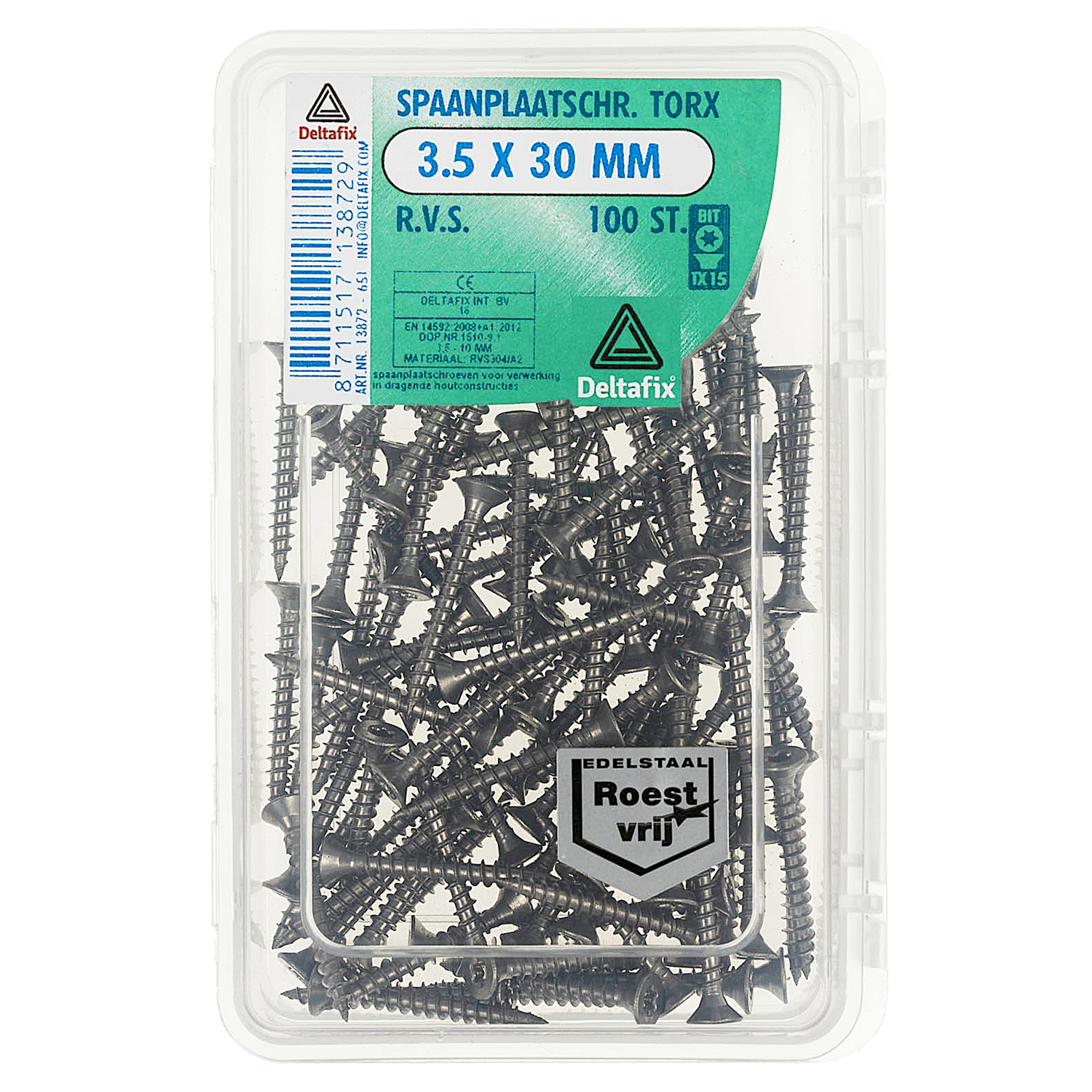 SPAANPLAATSCHROEF PK TX RVS A2 3.5 X 30 MM 100ST