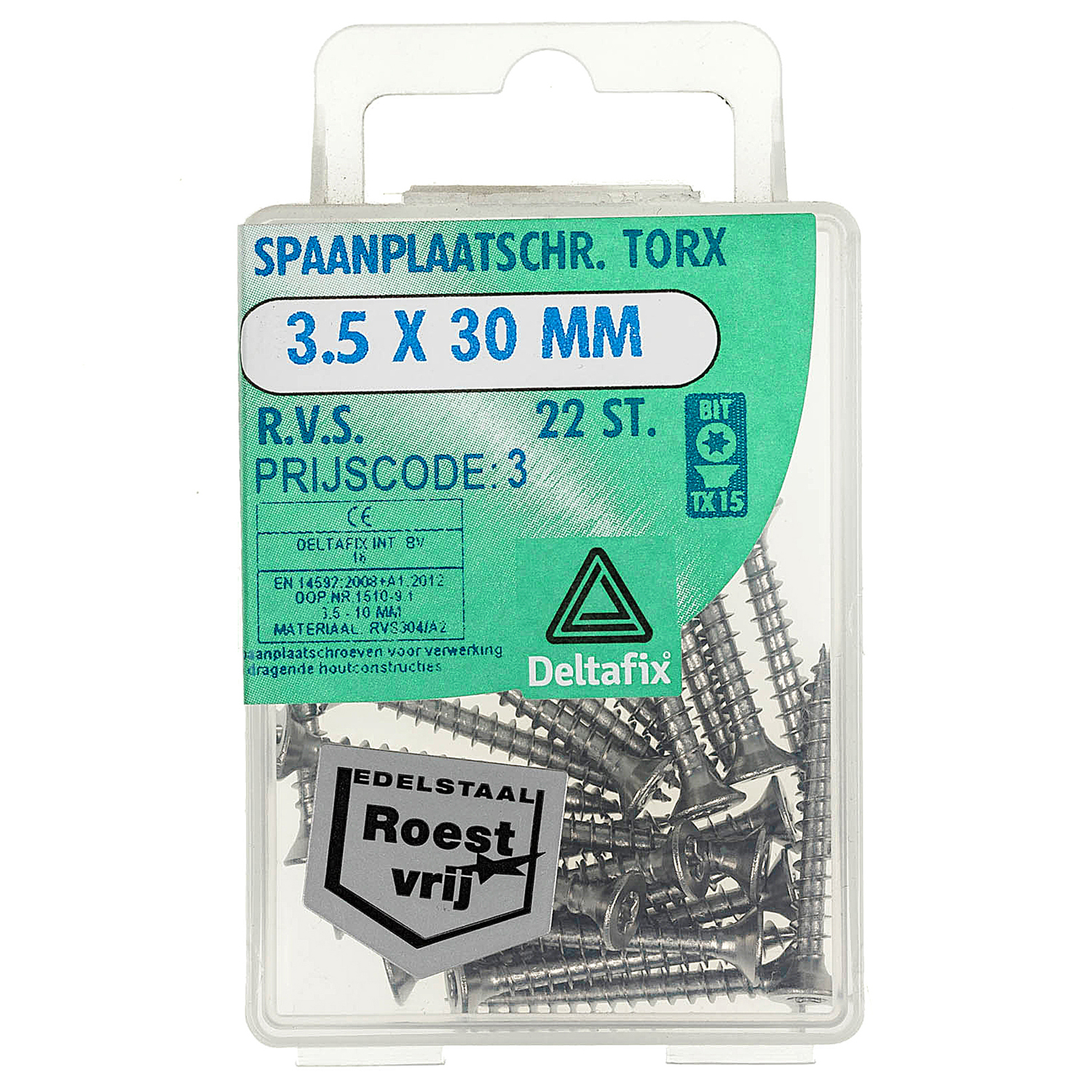 SPAANPLAATSCHROEF PK TX RVS A2 3.5 X 30 MM 22ST