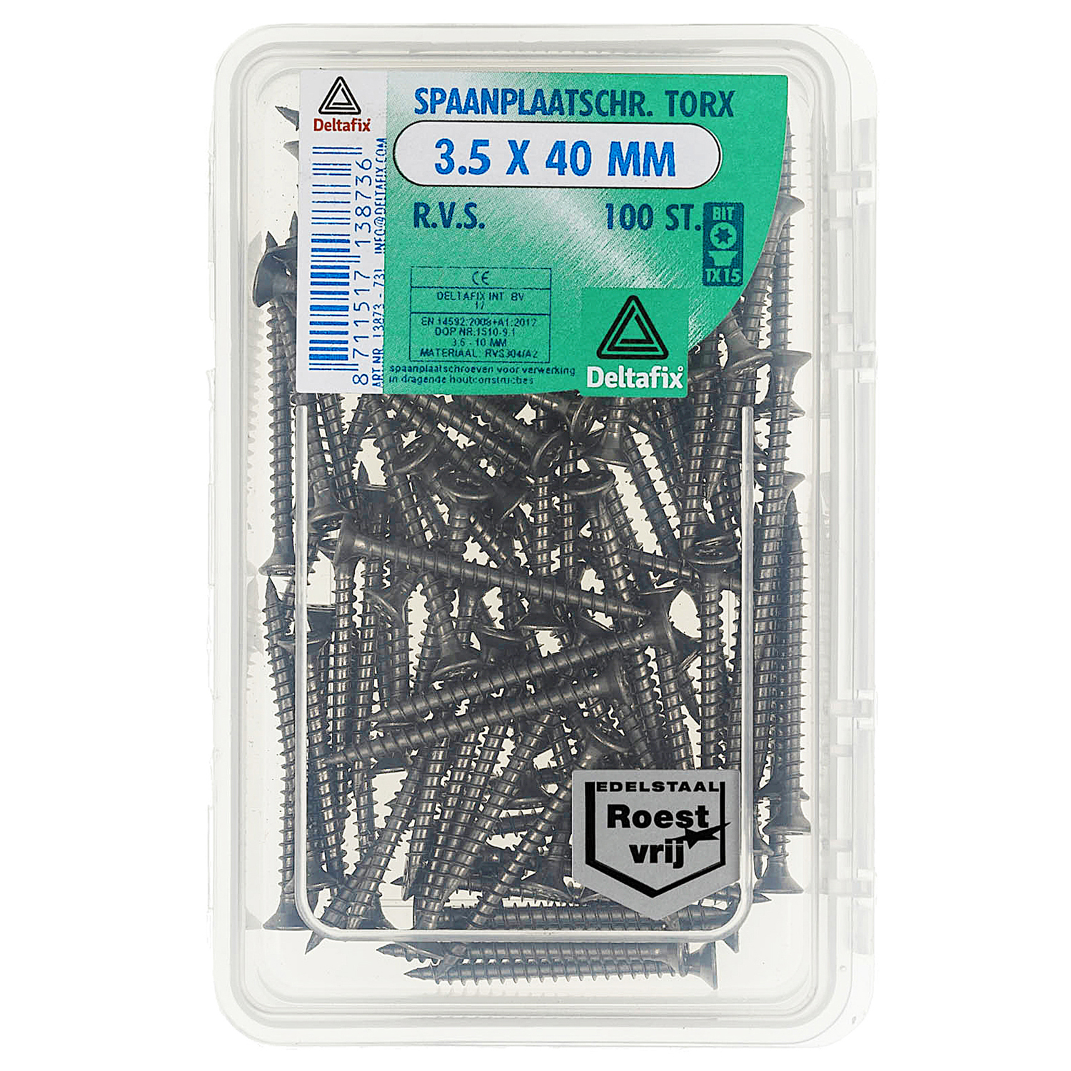 SPAANPLAATSCHROEF PK TX RVS A2 3.5 X 40 MM 100ST