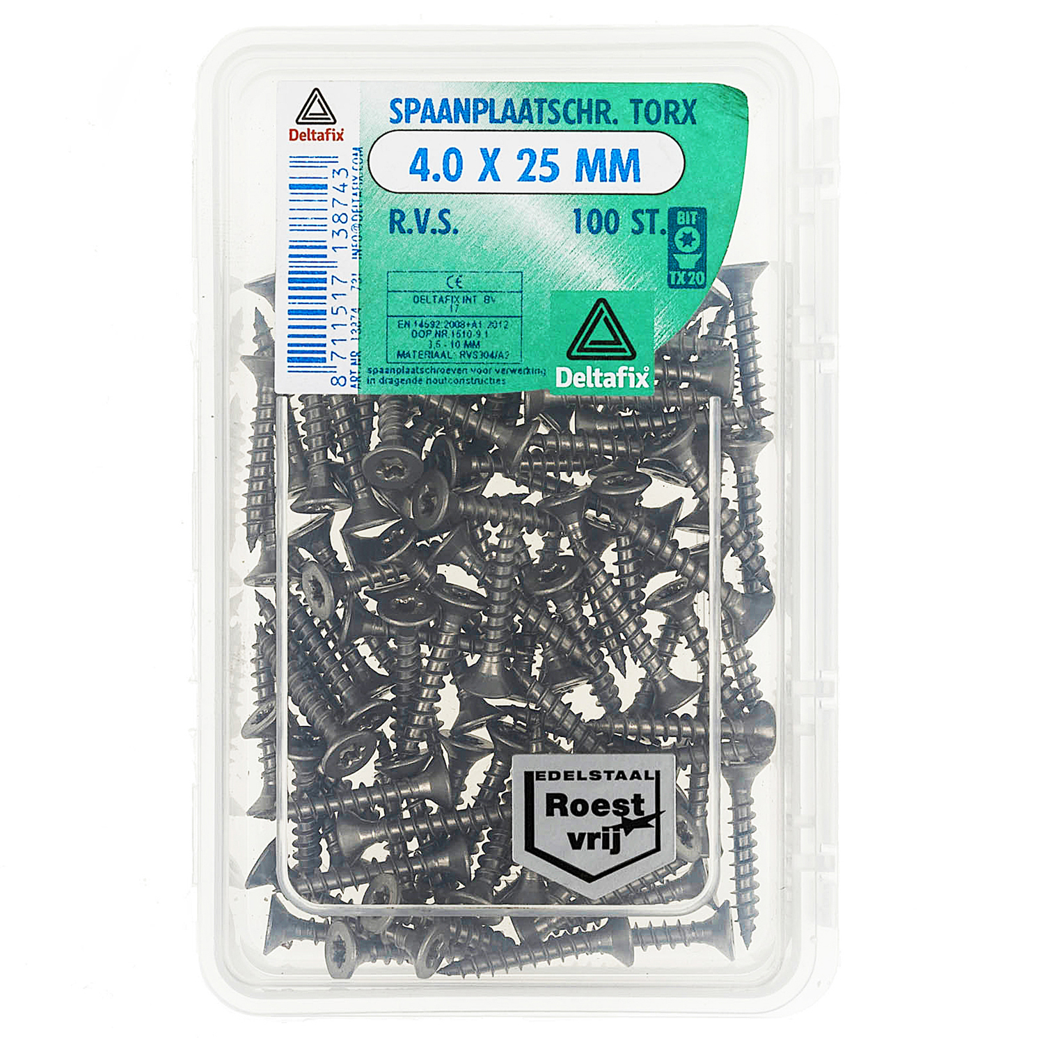 SPAANPLAATSCHROEF PK TX RVS A2 4.0 X 25 MM 100ST