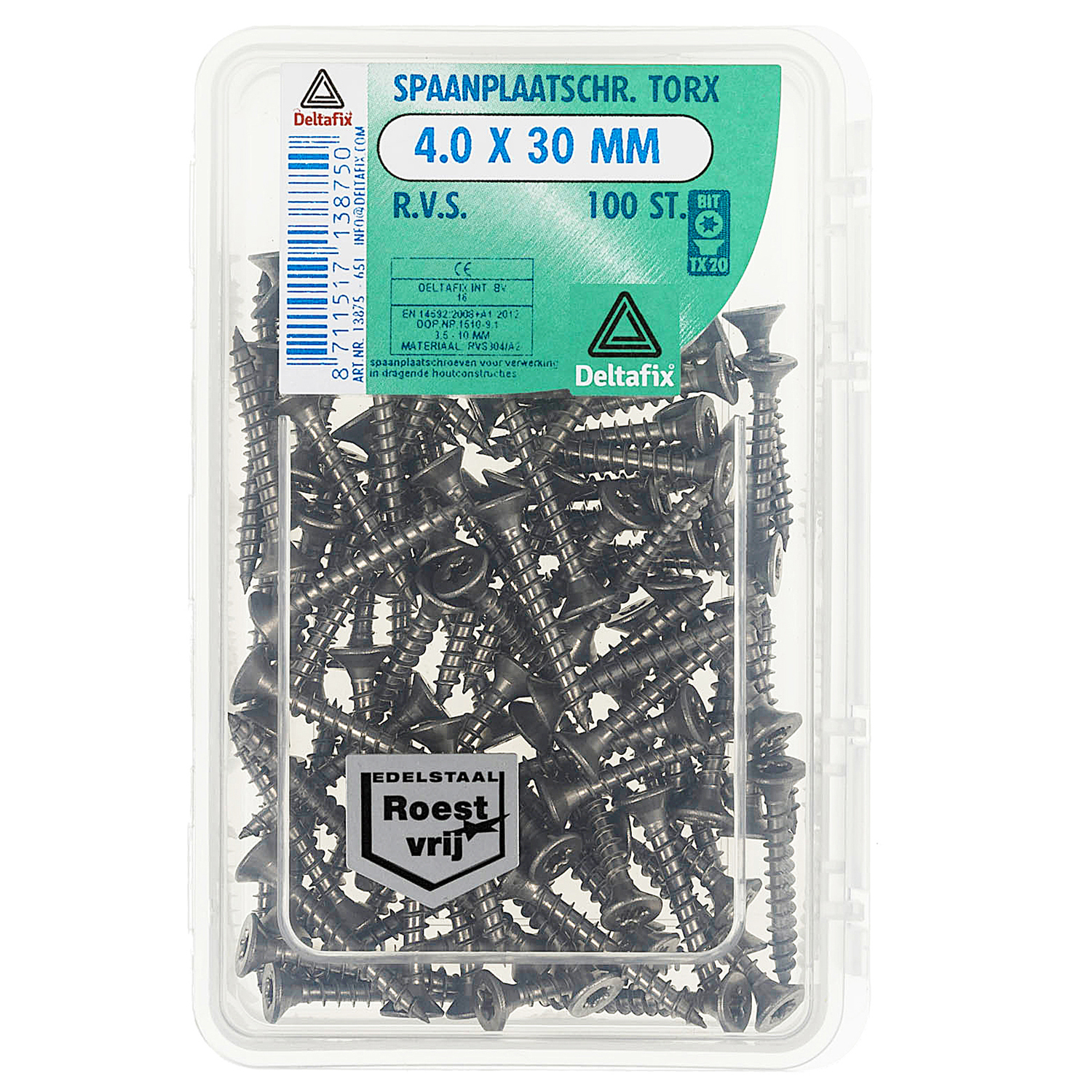 SPAANPLAATSCHROEF PK TX RVS A2 4.0 X 30 MM 100ST