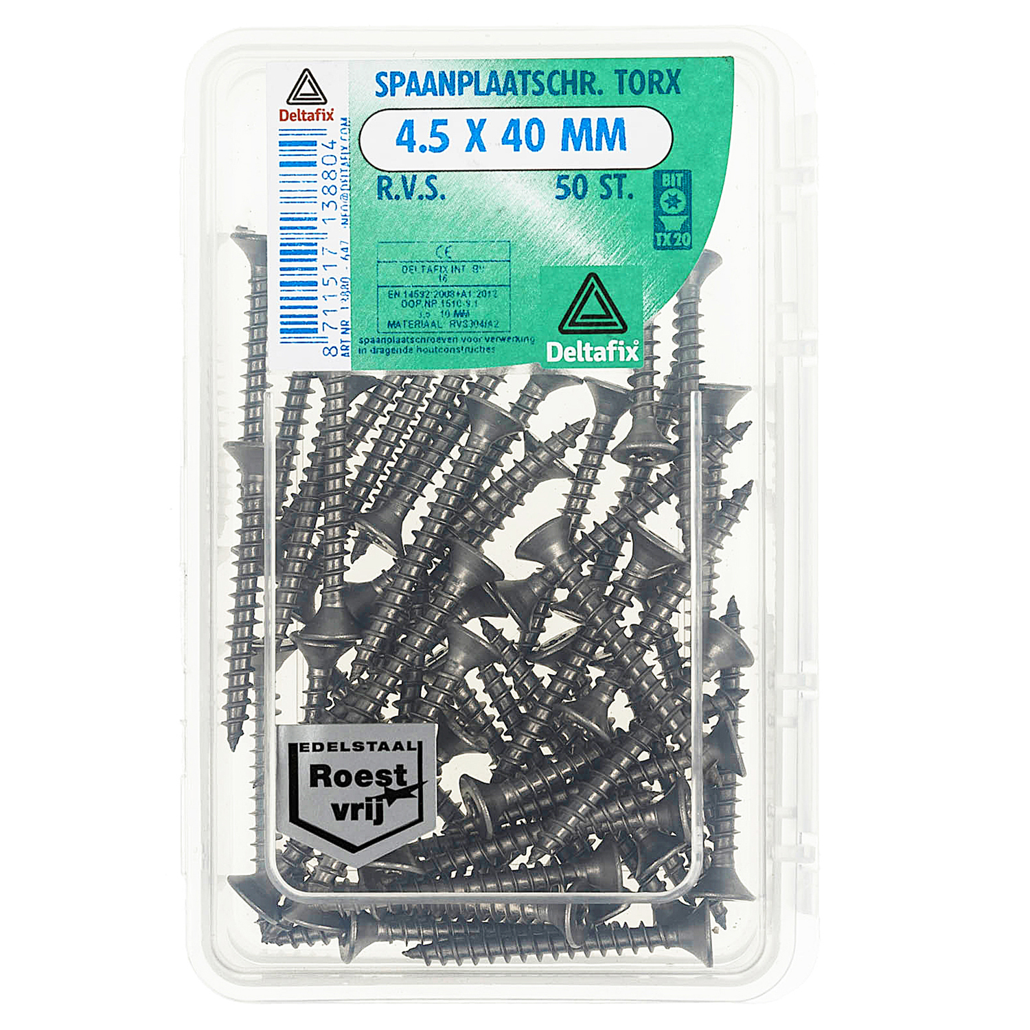 SPAANPLAATSCHROEF PK TX RVS A2 4.5 X 40 MM 50ST