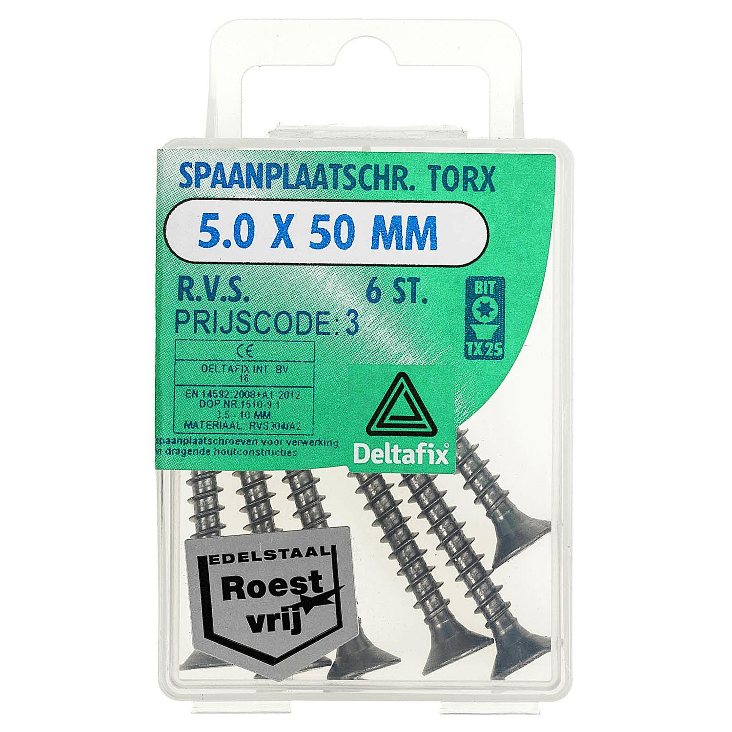 SPAANPLAATSCHROEF PK TX RVS A2 5.0 X 50 MM 6ST