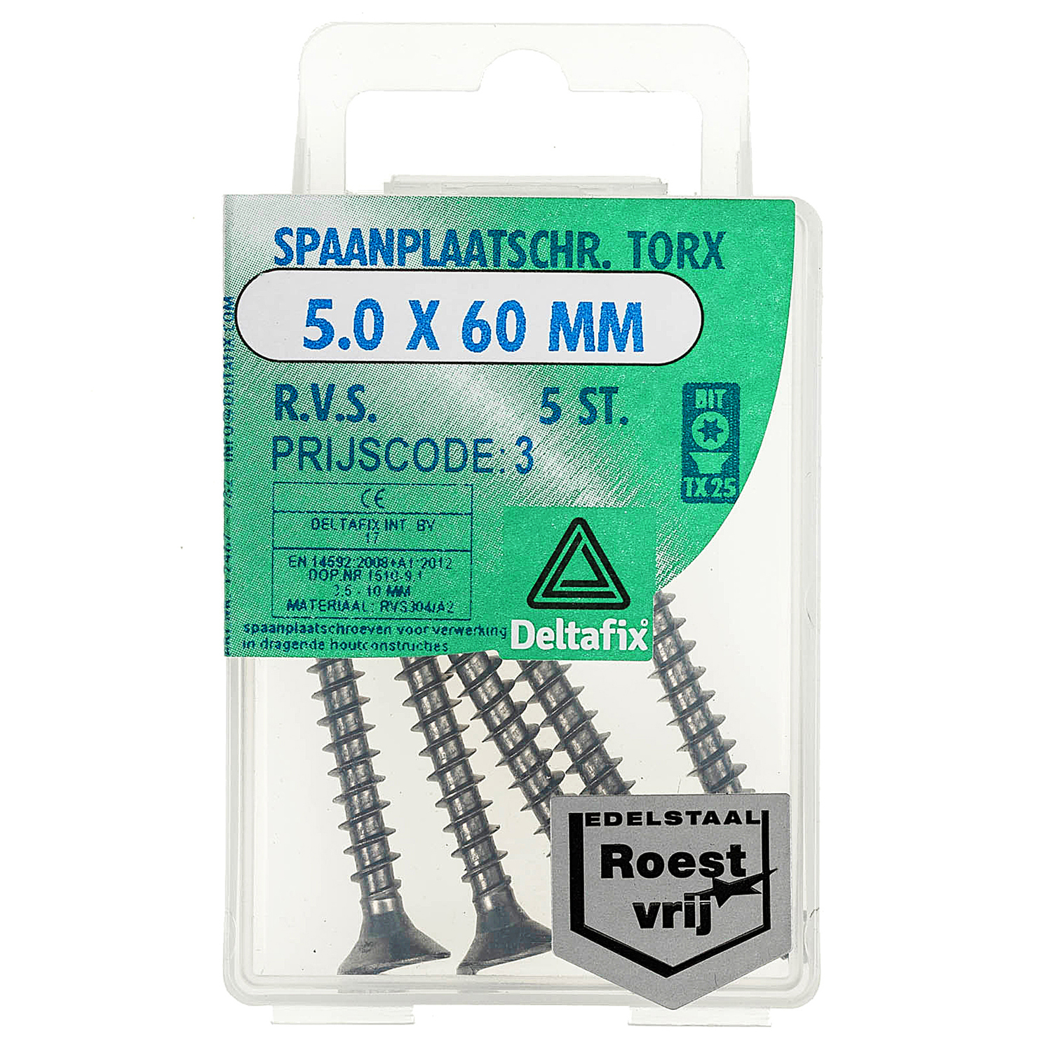 SPAANPLAATSCHROEF PK TX RVS A2 5.0 X 60 MM 5ST