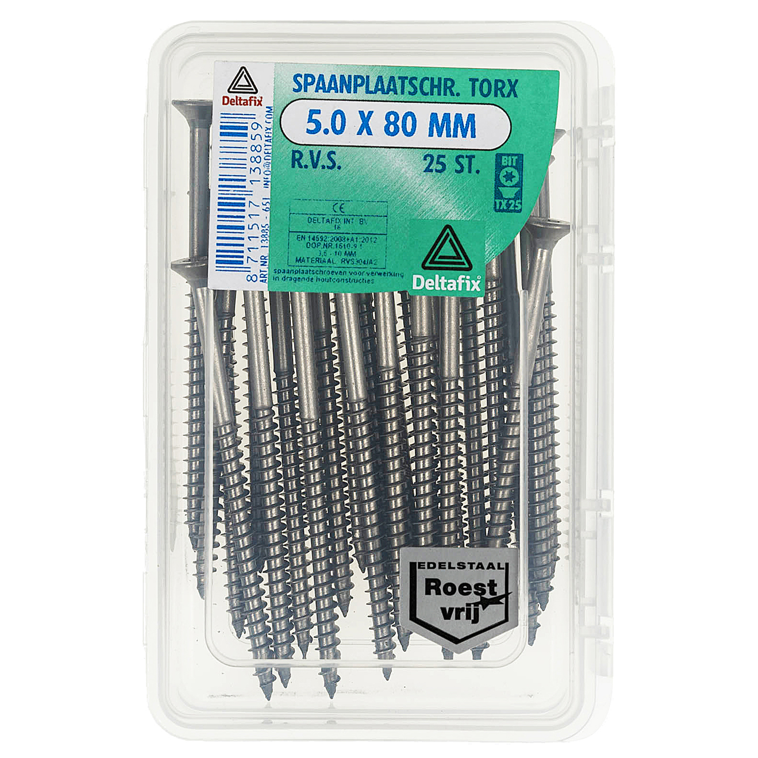 SPAANPLAATSCHROEF PK TX RVS A2 5.0 X 80 MM 25ST
