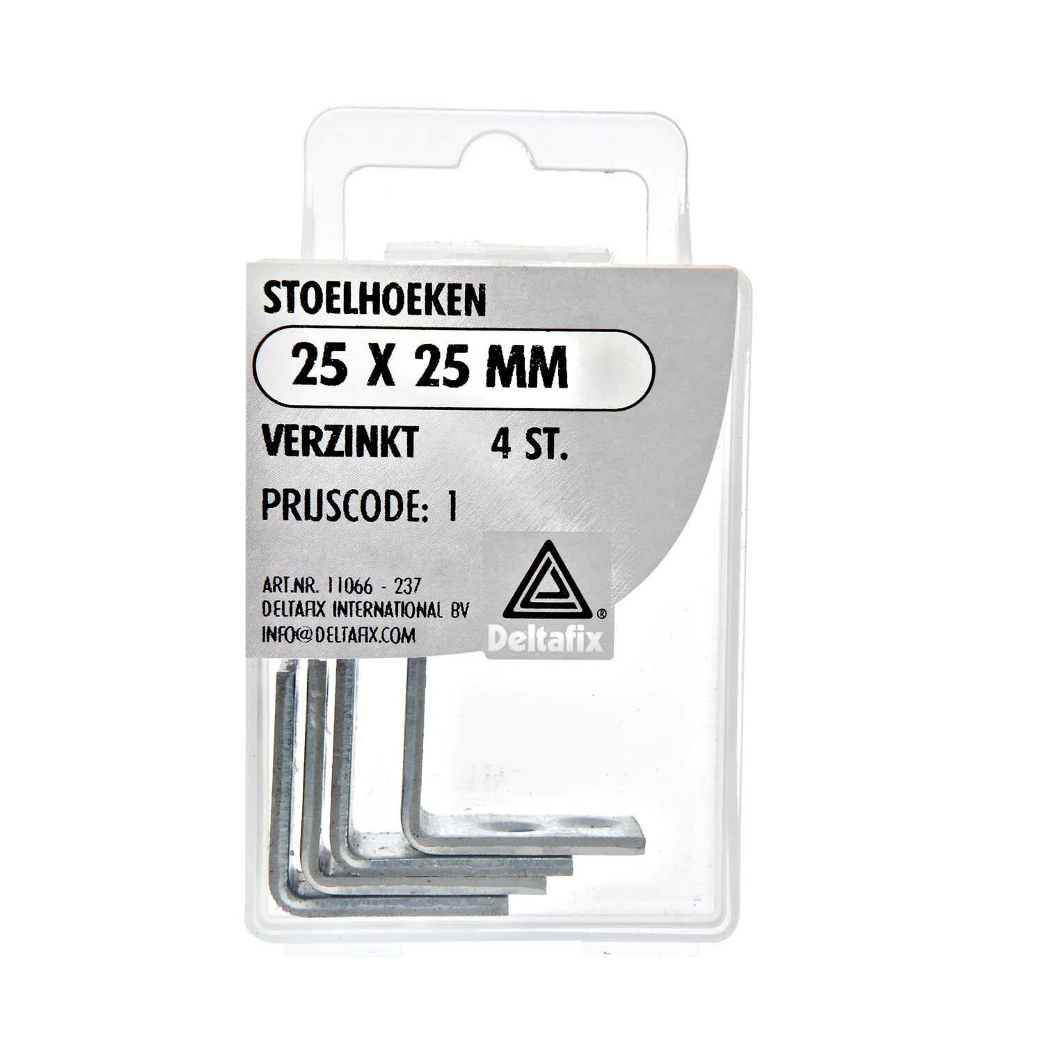 Verzinkt stalen stoelhoek met schroefgaten. Voor diverse montagetoepassingen.