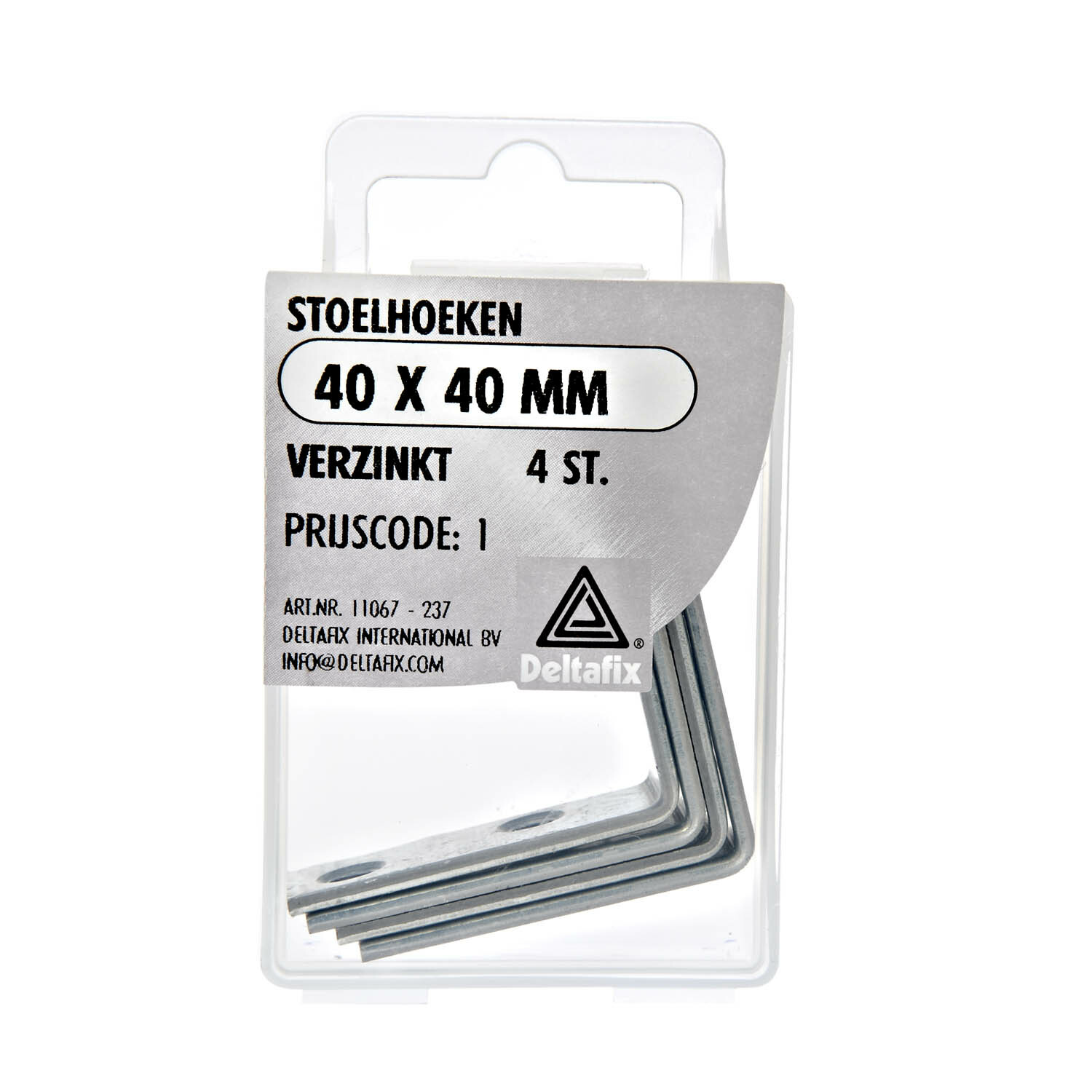 Verzinkt stalen stoelhoek met schroefgaten. Voor diverse montagetoepassingen.