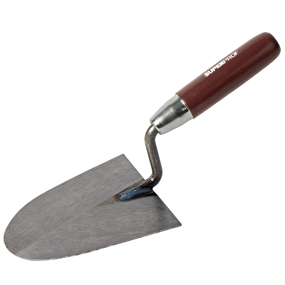Super Prof metseltroffel 160 mm rechtshandig. Uitgevoerd met een houten handgreep.