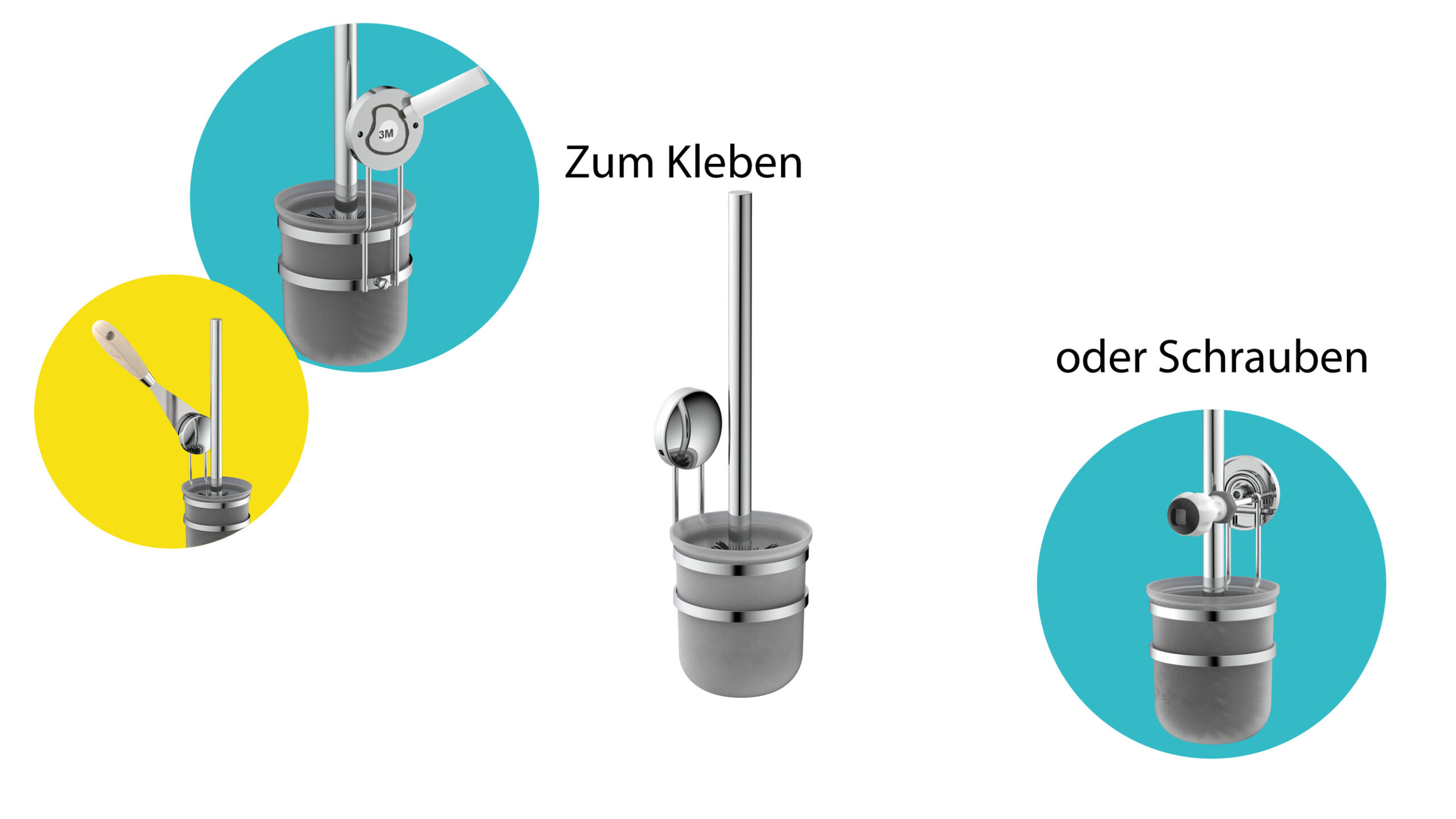 Toiletborstelhouder voor wandmontage, chroom, om te lijmen of schroeven • om te lijmen of te schroeven • vervangbare opzetborstel • materiaal: verchroomd RVS, transparante kunststof • incl. bevestigingsmateriaal om te lijmen of te schroeven • voor eenvoudige en hygiënische reiniging • Garantie: 2 jaar