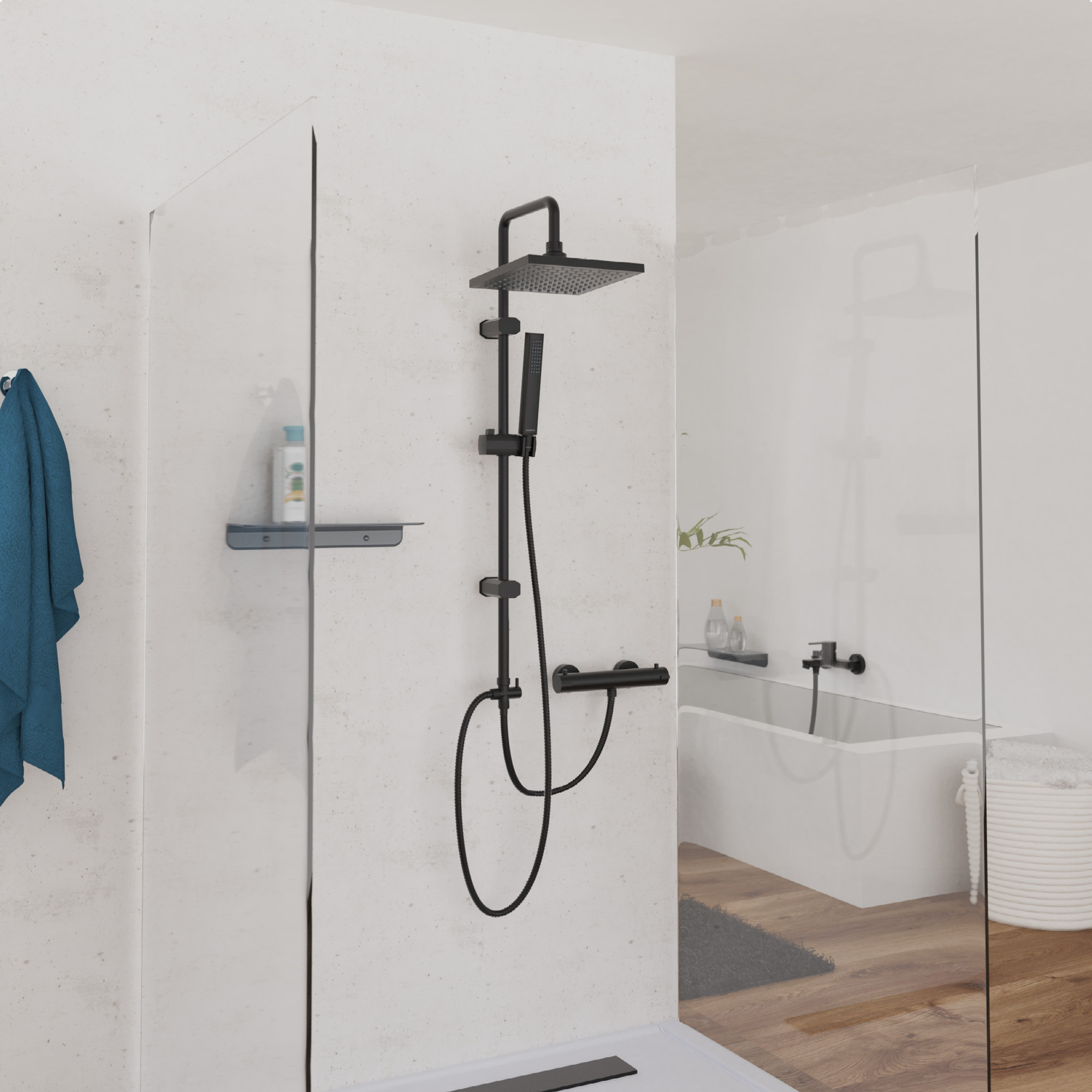 TOKYO Hoofddoucheset, mat zwart • ½” (Ø ca. 1,9 cm) aansluiting • antikalk nozzles • omsteller (switchen tussen hoofd- en handdouche) • wellness-hoofddouche • afmetingen (L x B): ca. 20 x 20 cm • in hoogte verstelbare wandbevestiging • knikbestendige kunststof doucheslang in mat zwart • lengte: ca. 150 cm • lengte: ca. 70 cm […]