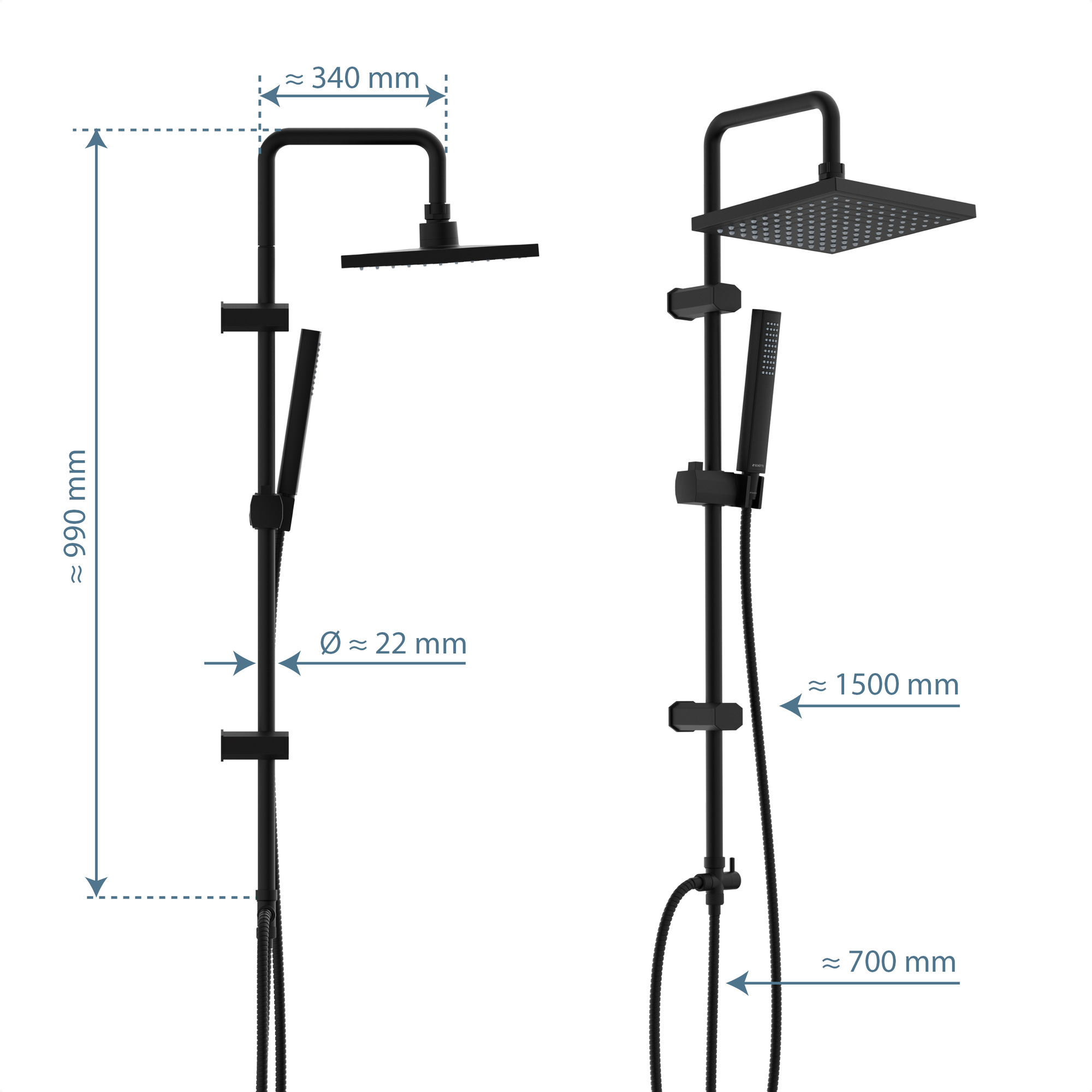 TOKYO HOOFDDOUCHESET, MAT ZWART