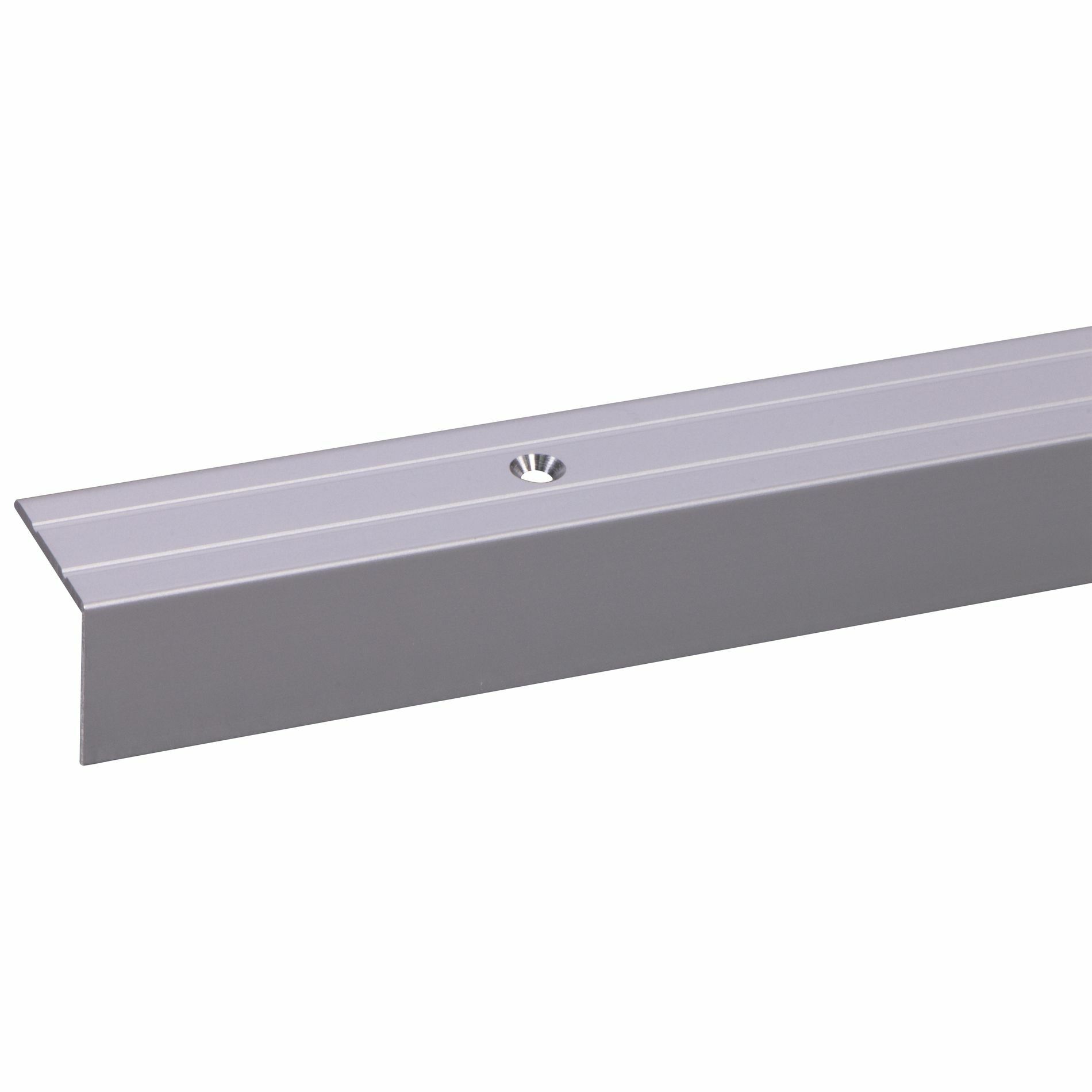 Voor de afwerking van vloer naar trap. Bijbehorend bevestigingsmateriaal zit bij het profiel verpakt. Voor gebruik binnen in huis. Montage gebeurt met schroeven en pluggen in je basisvloer. In de (beton) vloer boor je een gat met een (steen)boor van 6 mm. De breedte van het profiel is 24 mm. De hoogte van de neus is 20 mm. Het profiel is van metaal met een zilver-look afwerking. Afneembaar met vochtige doek en niet-agressief schoonmaakmiddel.