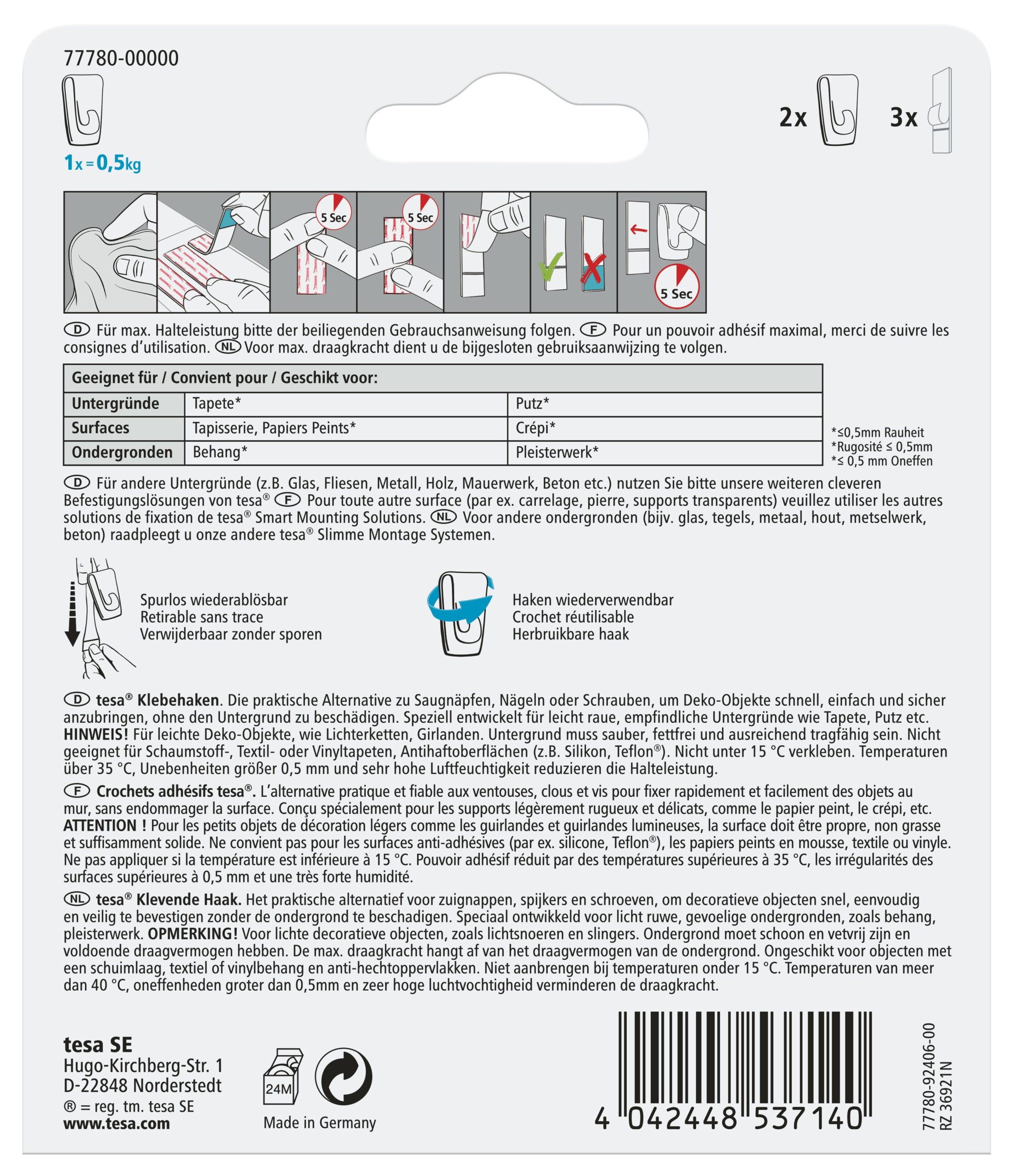 tesa® KLEVENDE HAAK GEVOELIGE OPPERVLAKKEN 0.5KG
