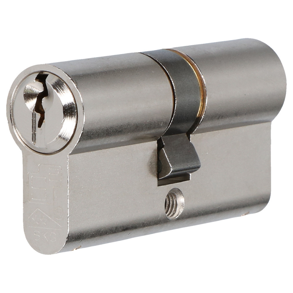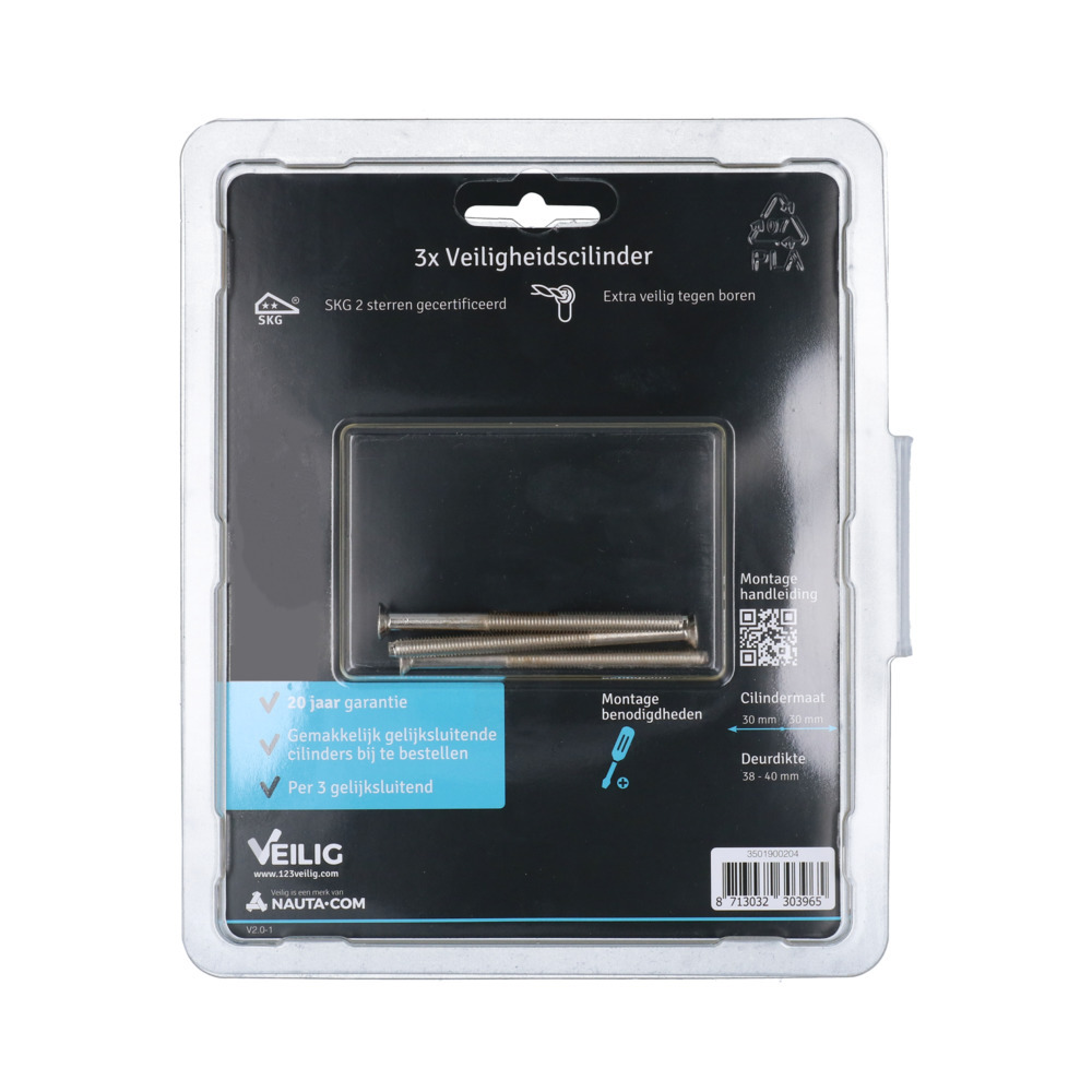 VEILIG veiligheidsprofielcilinder, lengte 30/30, profiel S6, messing vernikkeld, per 3 gelijksluitend, 6 sleutels, skg**, in blister