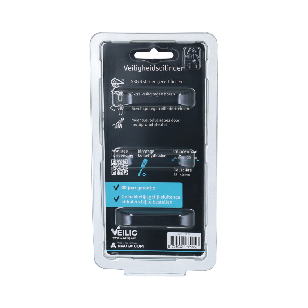 VEILIG veiligheidsprofielcilinder, lengte 30/30, profiel S7, zwart, verschillend sluitend, 3 sleutels, skg***, in blister