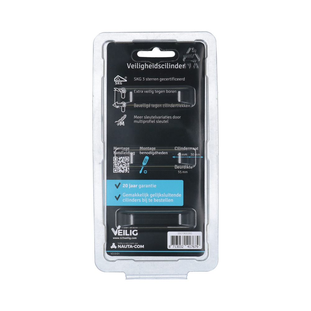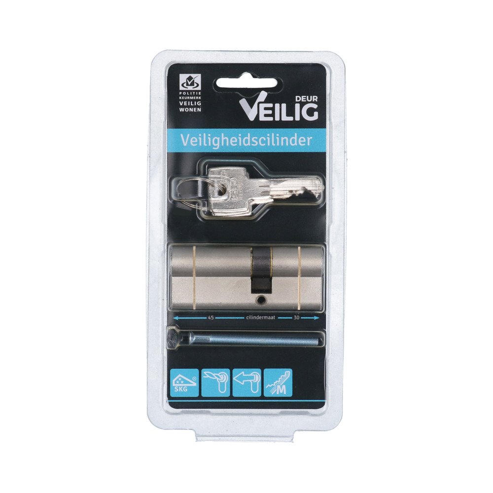 VEILIG veiligheidsprofielcilinder, lengte 30/45, profiel S7, messsing vernikkeld, verschillend sluitend, 3 sleutels, skg***, in blister
