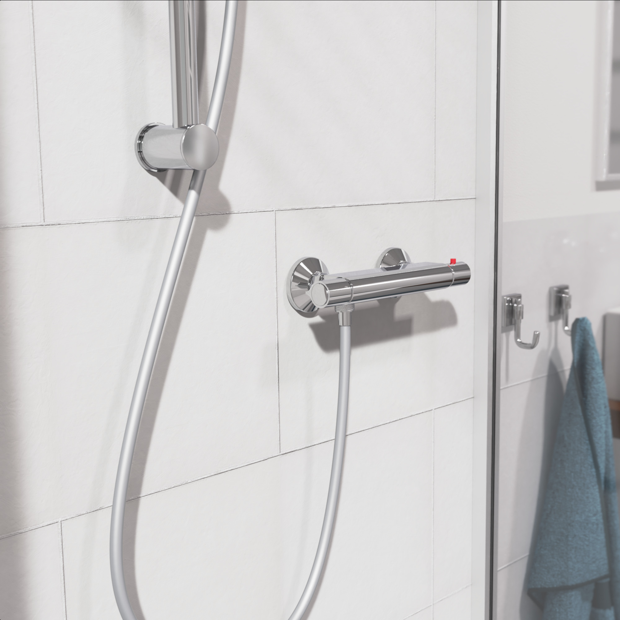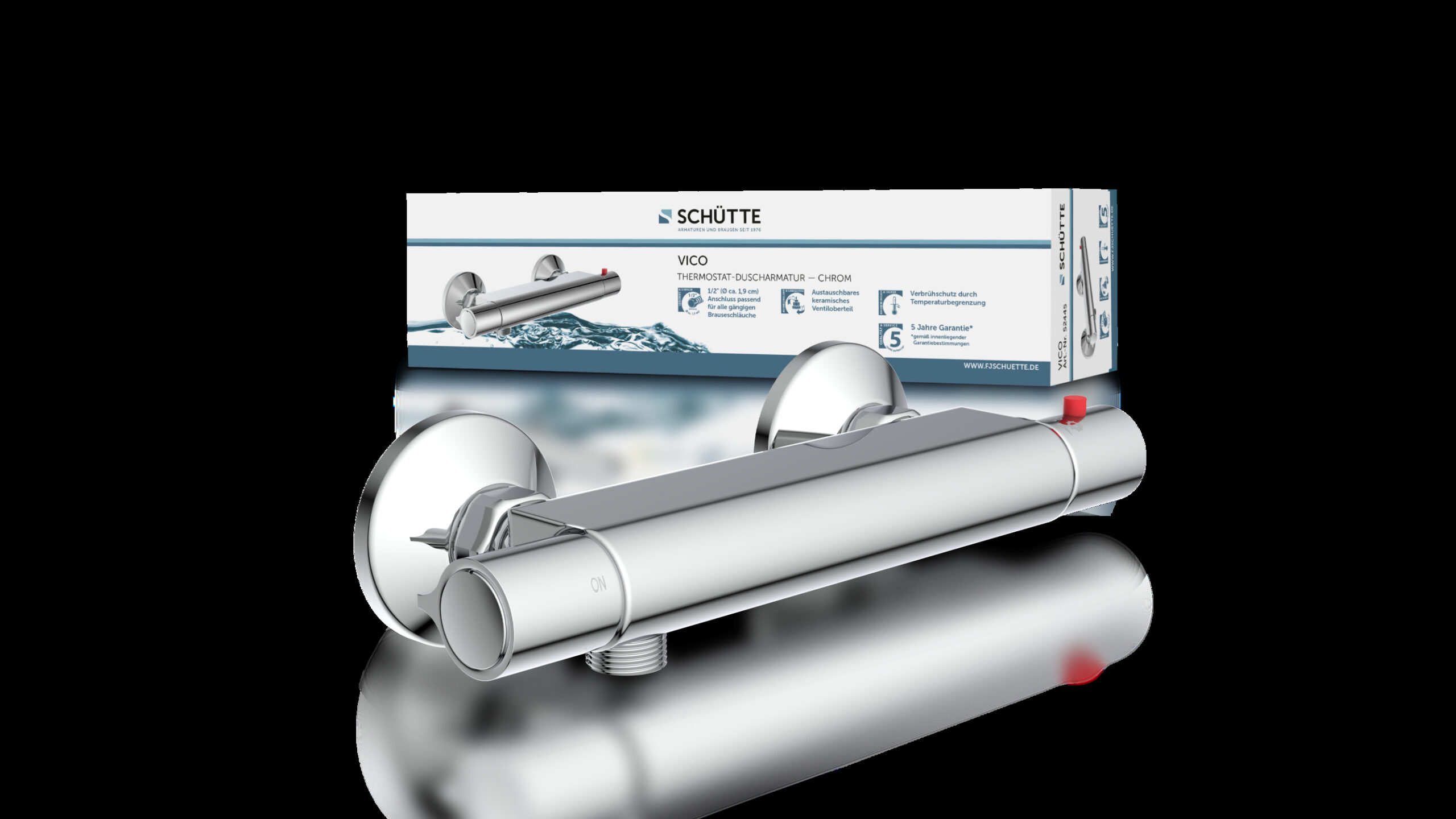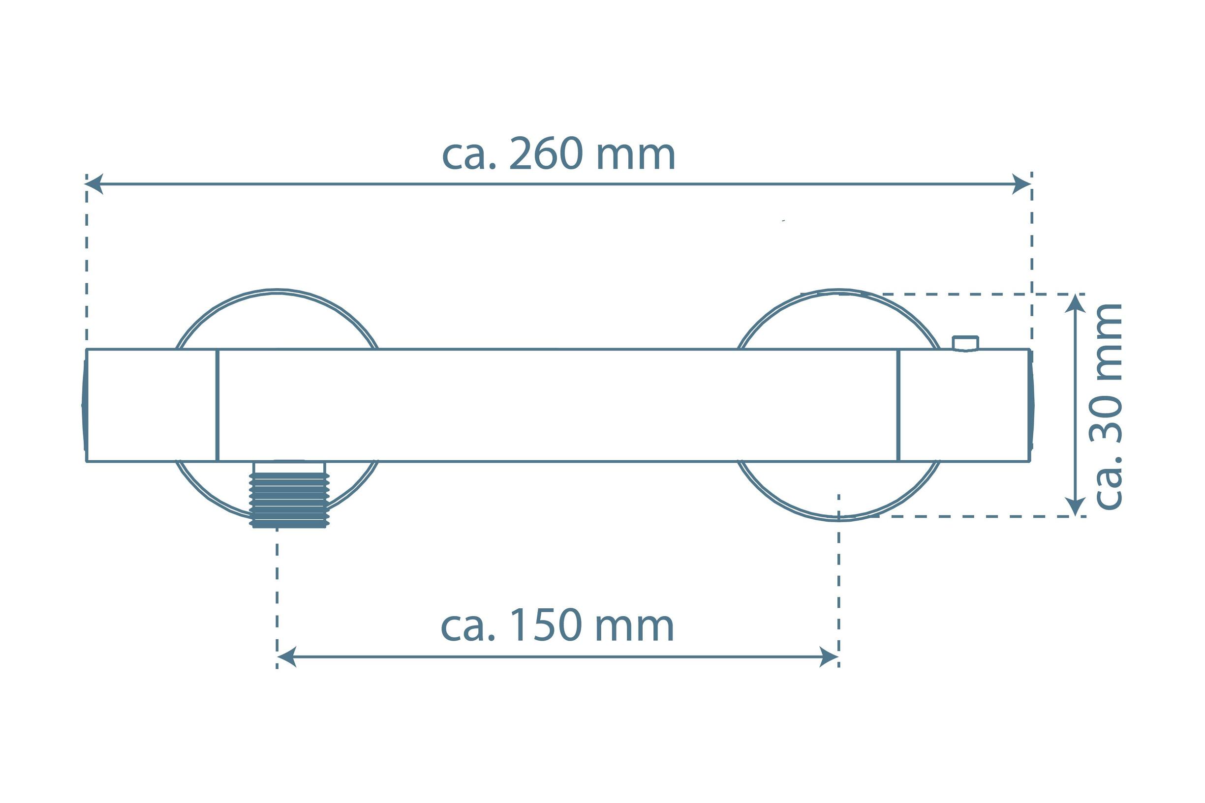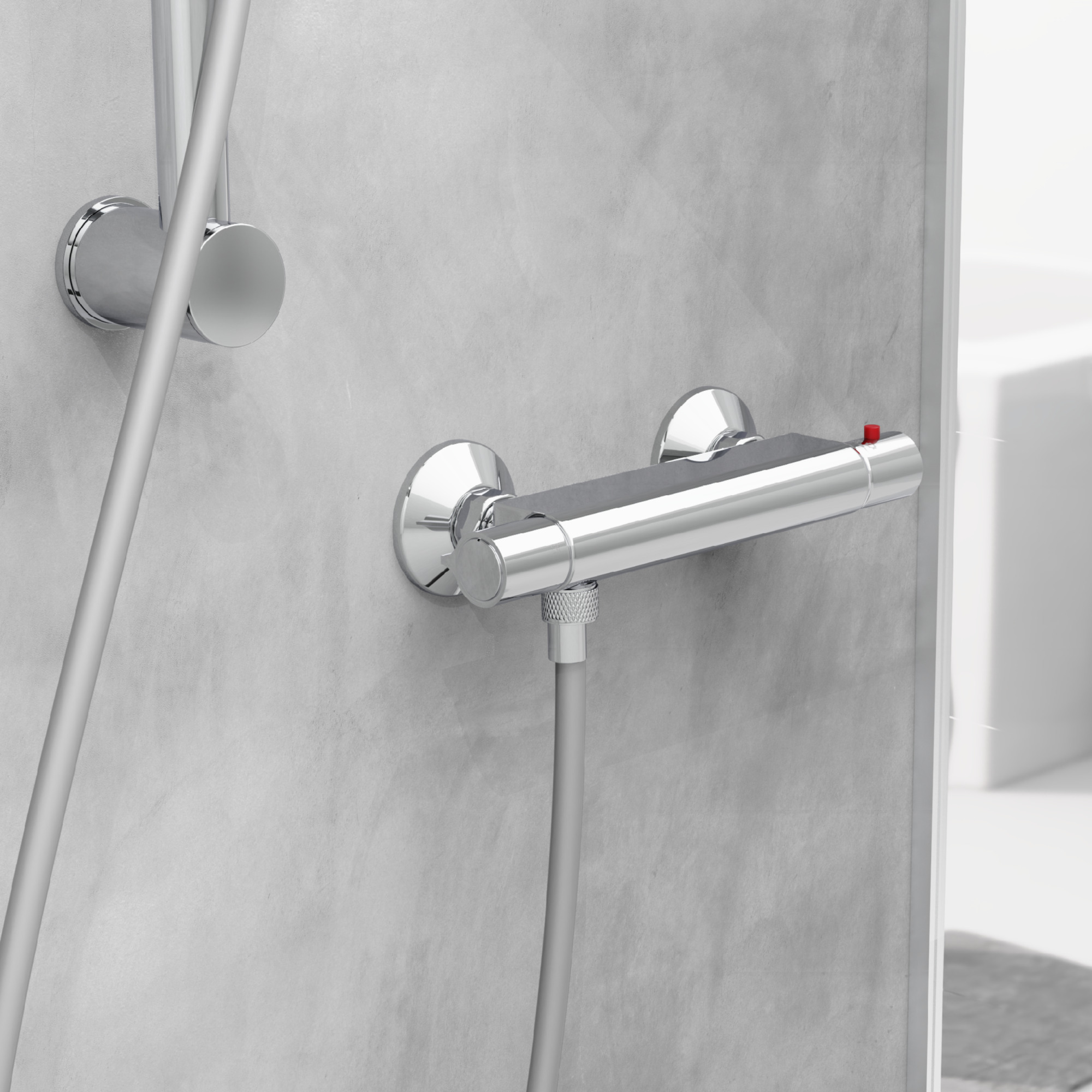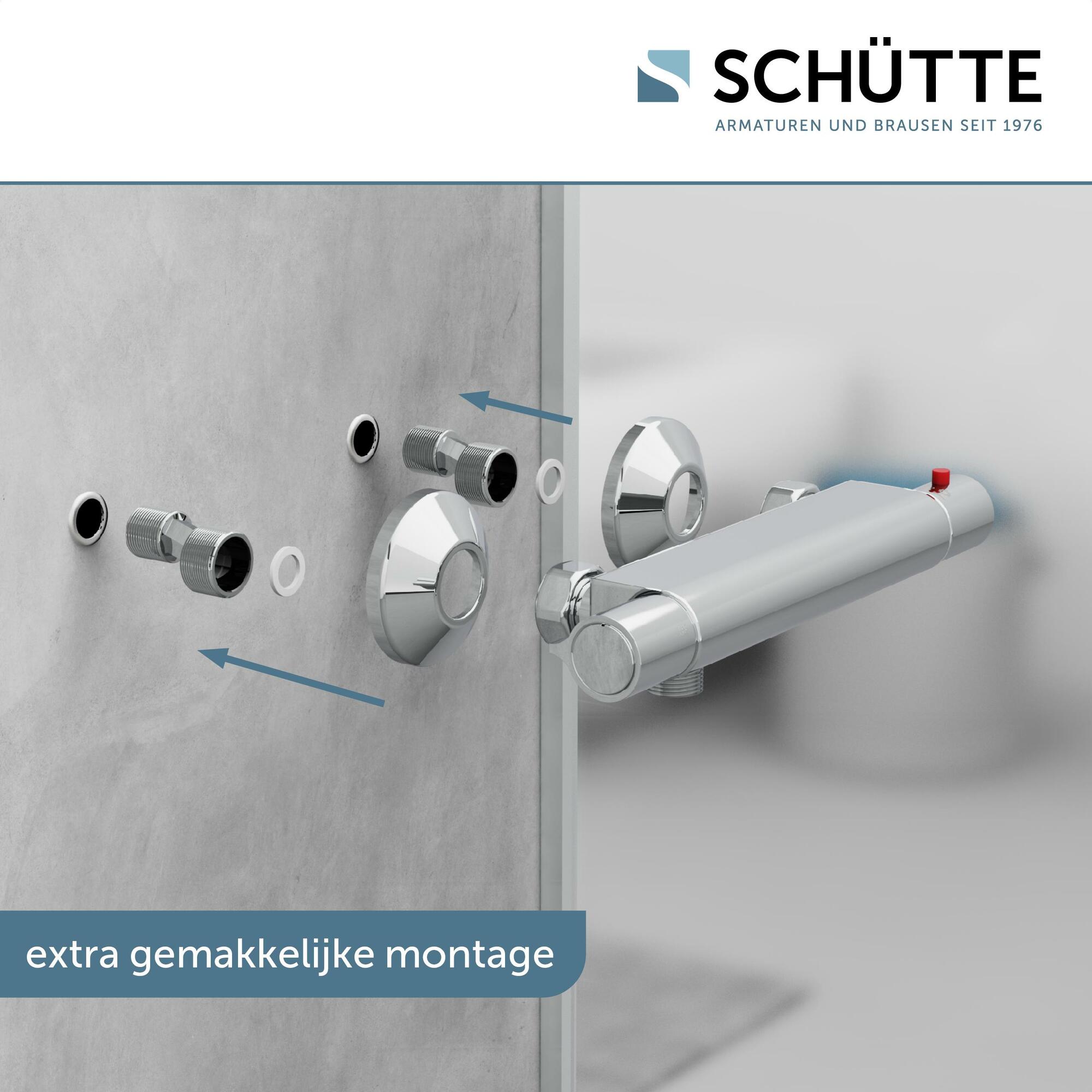 VICO Thermostatische douchekraan, chroom • temperatuurschaal met veiligheidsstop op 38 °C • ½” (Ø ca. 1,9 cm) verbinding voor doucheslang • ½” (Ø ca. 1,9 cm) keramisch ventiel bovenstuk • uitwisselbaar thermostatisch element • Garantie: 5 jaar