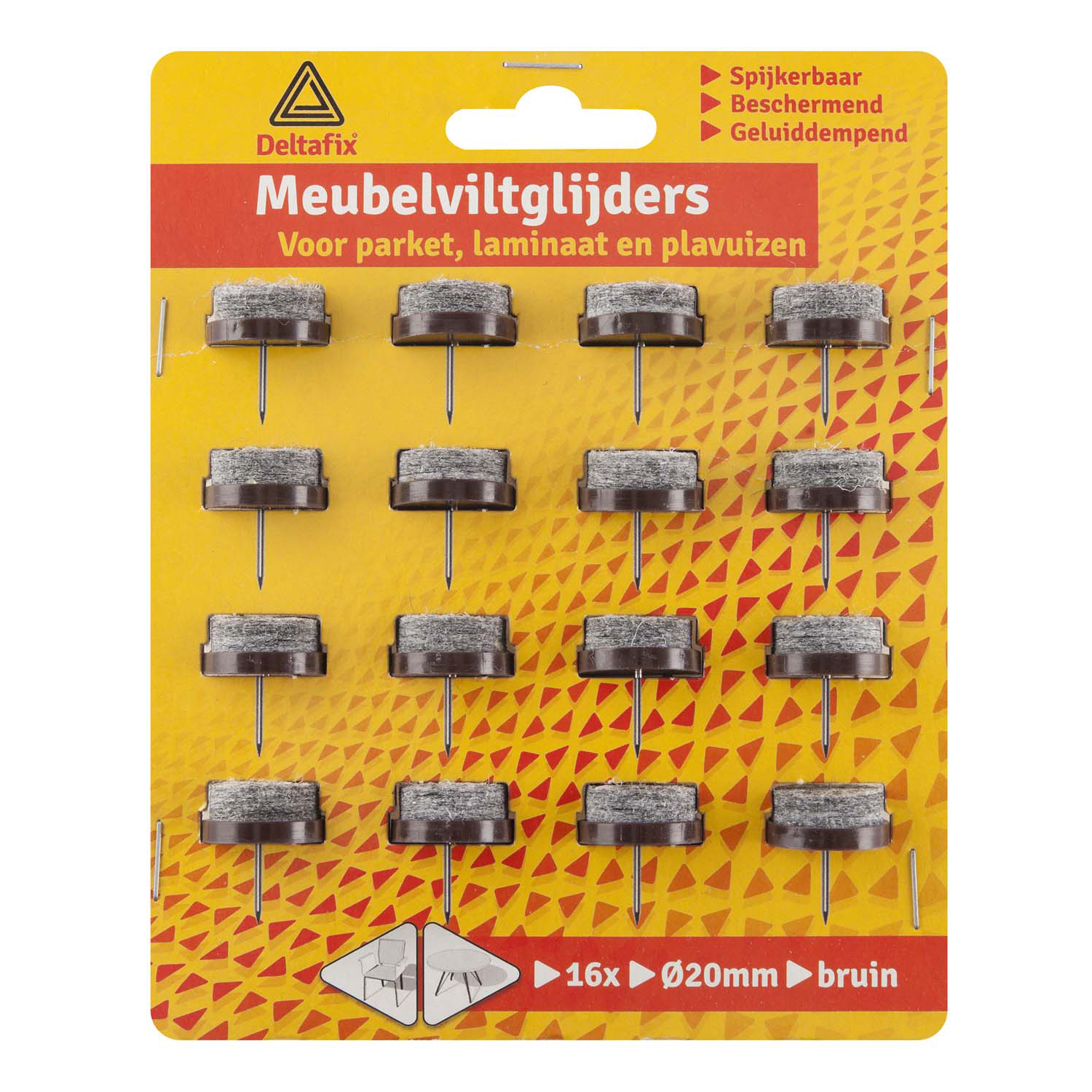 VILTGLIJDER MET NAGEL GRIJS VILT HOUDER BRUIN BRUIN 20 MM 16ST