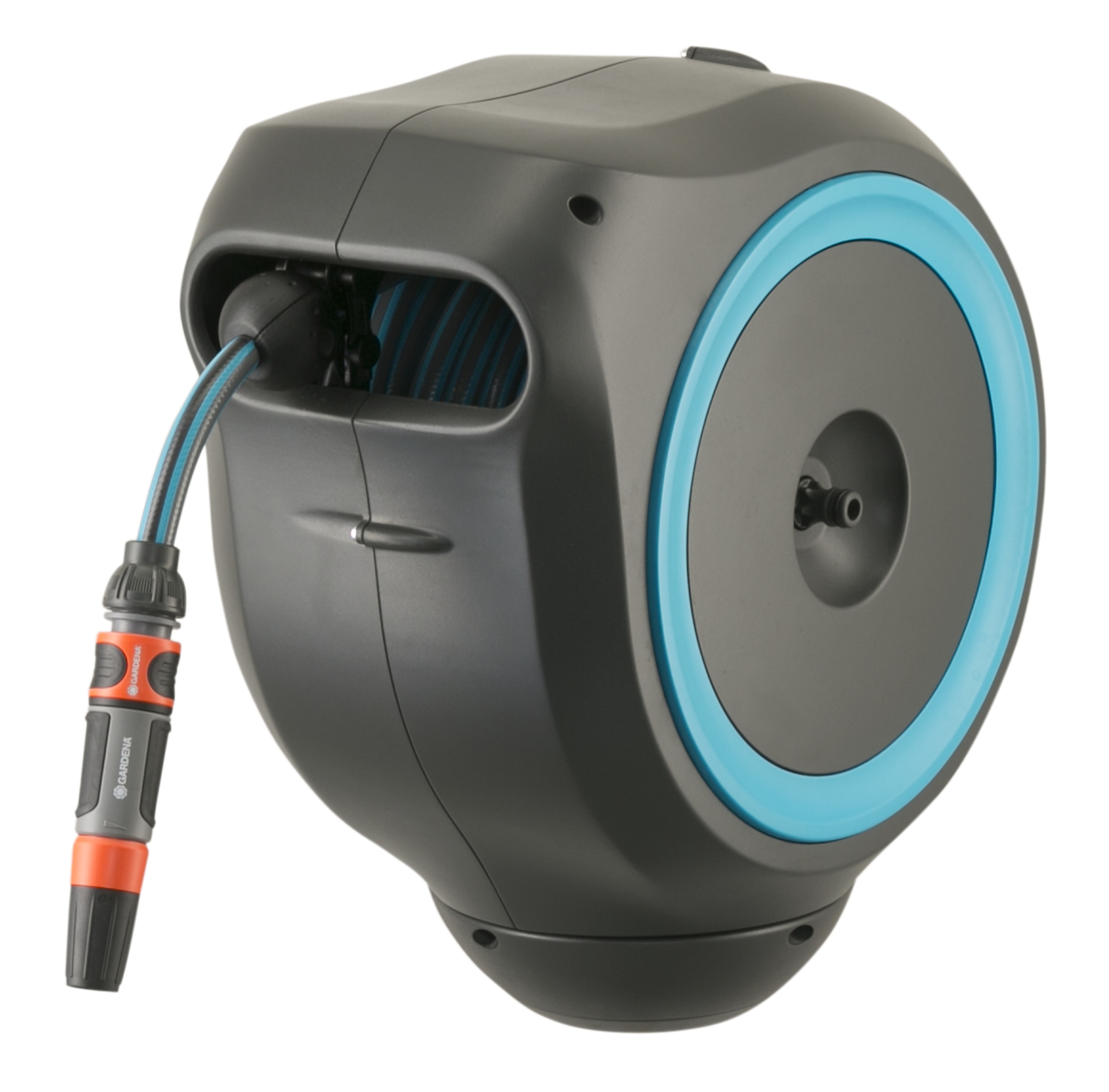 Gebruiksvriendelijke en flexibele bewatering voor kleinere tuinen. Tuinieren is handiger en gemakkelijker dan ooit met de wandslangenbox RollUp S. Deze helpt je tuin netjes en opgeruimd te houden en voorkomt hinderlijk struikelgevaar als gevolg van een rondslingerende slang. De praktische slangopslag is eenvoudig aan de muur van je huis te bevestigen en wordt met een flexibele aansluitslang aangesloten op de kraan. Dankzij de stevige muurbeugel kan de slangenbox meer dan 180° worden gedraaid, zodat je elke hoek van je tuin moeiteloos kunt bereiken. Voor direct gebruik kun je de tuinslang eenvoudig verlengen tot een lengte van maximaal 15 m. De tuinslang wordt automatisch in heel korte intervallen vergrendeld zodra je stopt, wat betekent dat de slang eenvoudig en gemakkelijk te hanteren is. Door lichtjes aan het uiteinde van de slang te trekken, wordt de vergrendeling ontgrendeld en een ingebouwde stalen veer met innovatieve RollControl-technologie zorgt voor soepel en gecontroleerd oprollen. De RollControl beschermt de slangenbox en de omgeving tegen schade als gevolg van het te snel inrollen. Om knikken of knopen in de slang te voorkomen, heeft de box een geïntegreerde slanggeleider. Dankzij de slang- en kraanaansluitingen van het Original GARDENA System kun je eenvoudig en flexibel een verlengstuk of ander compatibel GARDENA element op de slang aansluiten. Je hebt altijd je GARDENA slangopzetstukken bij de hand. Ze kunnen onder de muurbeugel worden bevestigd en daar worden opgeborgen om ruimte te besparen. De GARDENA wandslangenbox is UV- en vorstbestendig en kan het hele jaar door probleemloos aan de muur van het huis bevestigd blijven. Het hoogwaardige materiaal biedt je een lange levensduur en gebruiksgemak zonder onderhoud. Bovendien kan de box niet worden gestolen dankzij de antidiefstalbeveiliging en kan de box alleen door jou van de muur worden verwijderd. Samen met de wandslangenbox ontvang je een muurbeugel, een flexibele aansluitslang, alle benodigde Original GARDENA System en montageonderdelen en een mondstuk met twee verschillende sproeiopties. Dit hoogwaardige product wordt geleverd met een garantie van vijf jaar van GARDENA. Bewatering die altijd gebruiksklaar is dankzij de GARDENA wandslangenbox RollUp S.