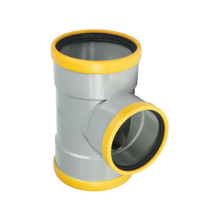 Dit 88° T-stuk is uitgevoerd in 3x manchet en wordt gebruikt voor buitenriolering.