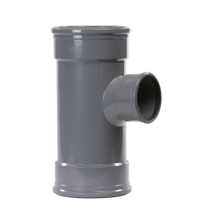 Dit 88° verloop T-stuk, met een diameter van 125 mm en een verloop diameter van 110 mm, is uitgevoerd met 3x manchet en is geschikt voor buitenriolering.