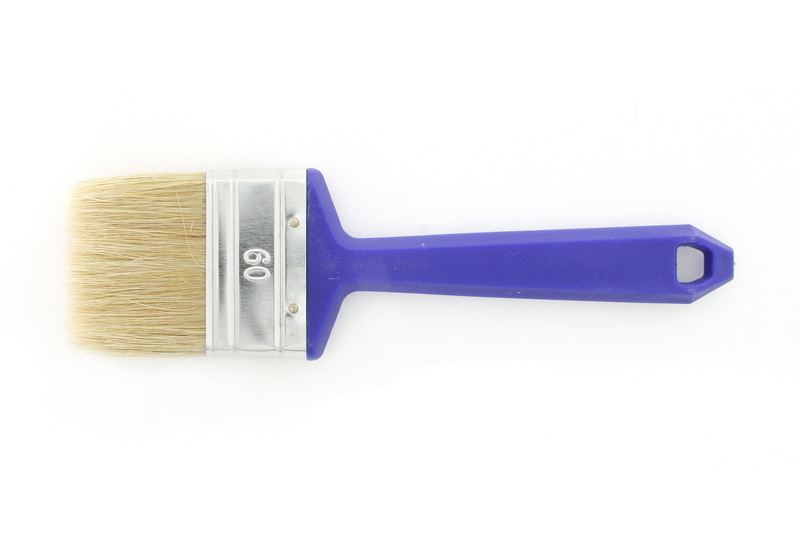 VEBA Serie 929 Platte wegwerpkwast maat 60? – Blauwe kunststof steel ( hol ) met verzinkte bus en wit haar – Basis kwaliteit – Geschikt voor vele verf en lijm klussen