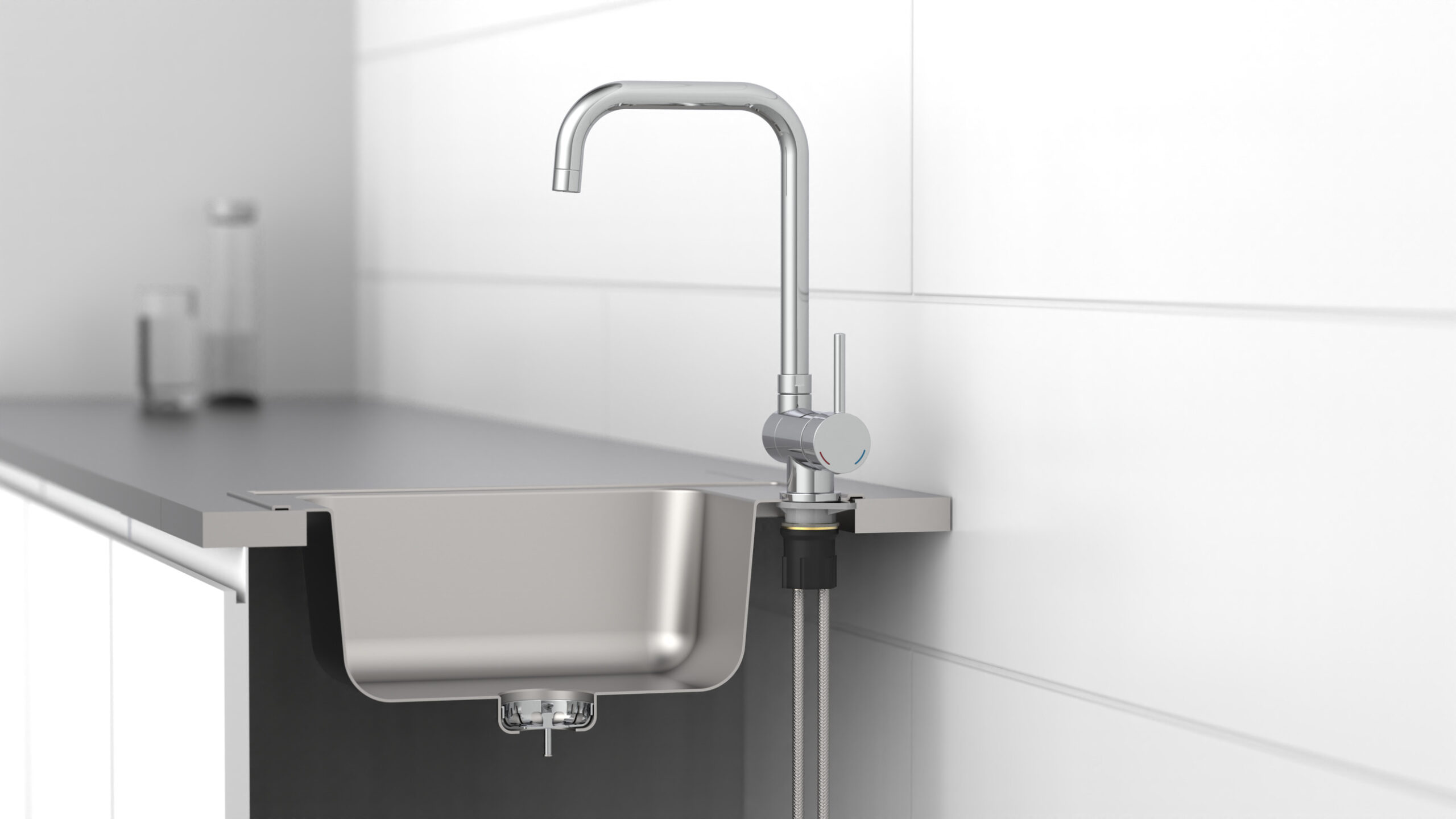 WINDOW Keukenkraan, chroom • 360° draaibare uitloop, opvouwbaar • praktische cold-start functie om energie te besparen • geluidsarme, uitwisselbare 40 mm keramische cartridge • extra eenvoudige montage door centrale bevestigingsmoer • flexibele aansluitslangen ca. 500 mm • merk straalregelaar voor een perfect straalbeeld • Garantie: 5 jaar