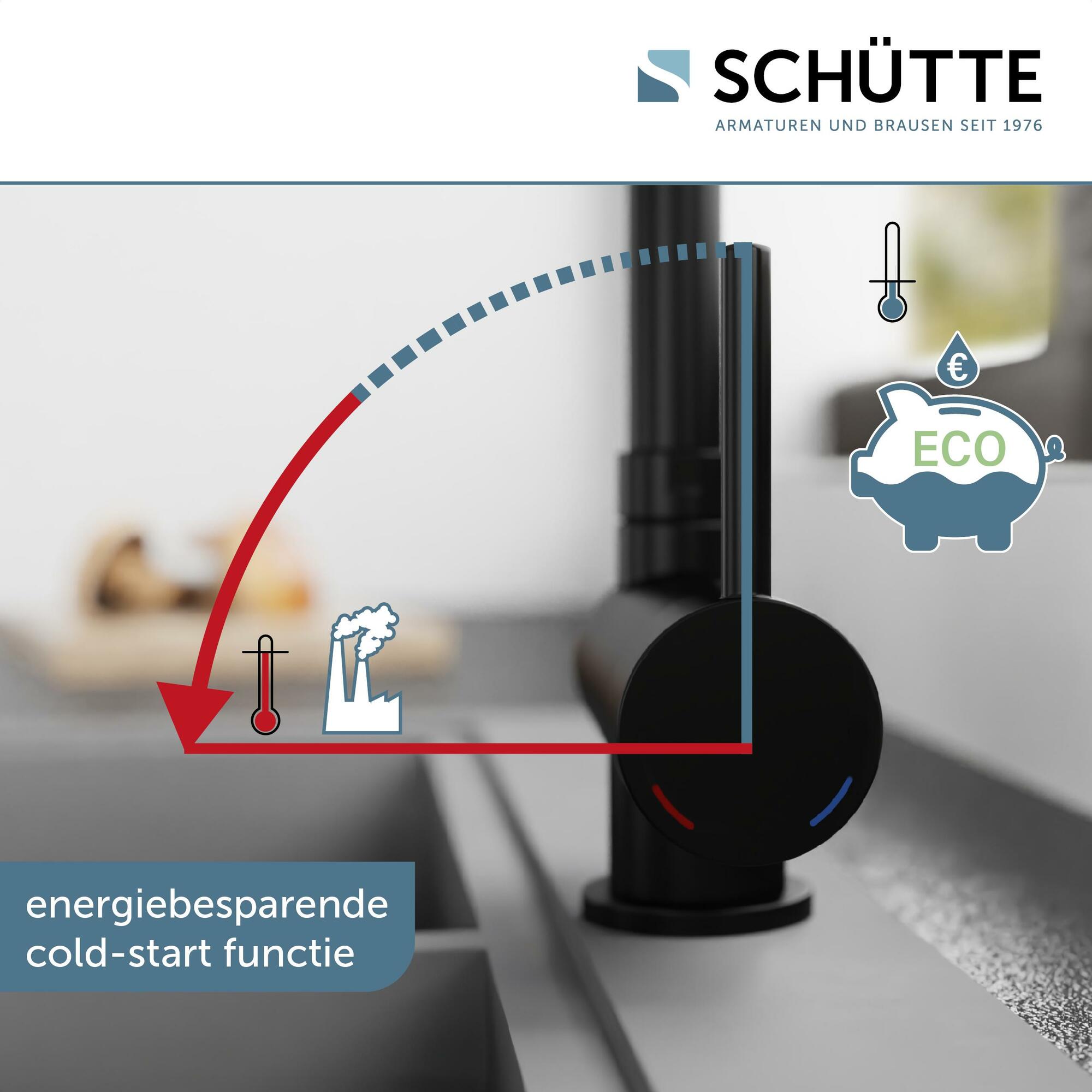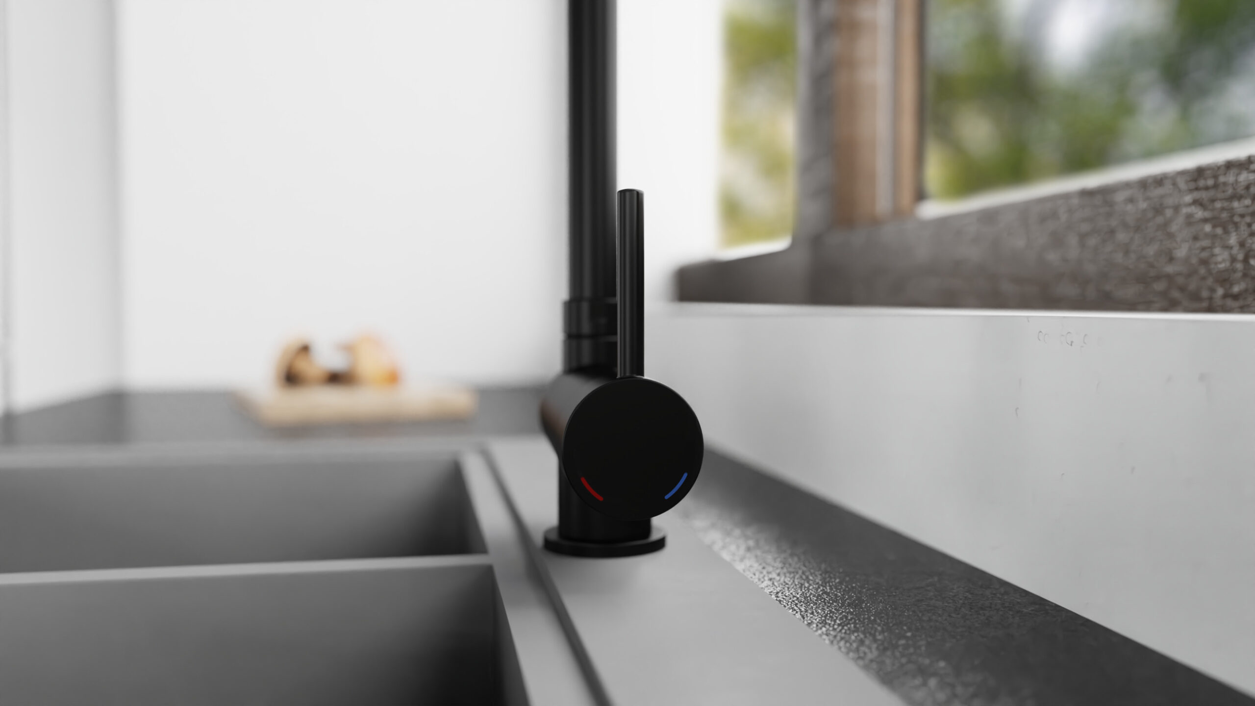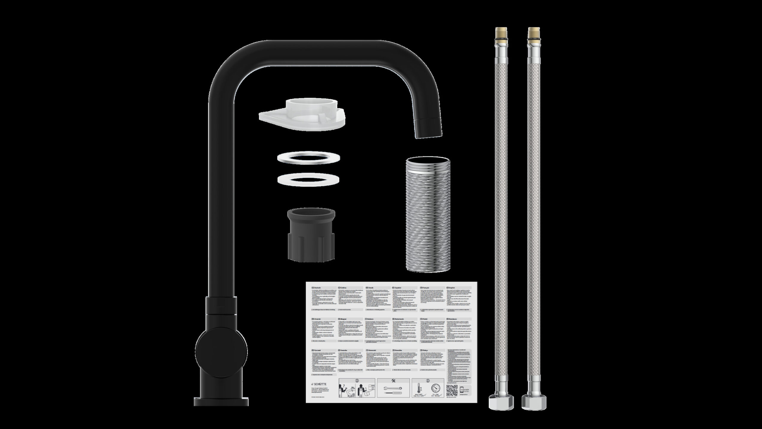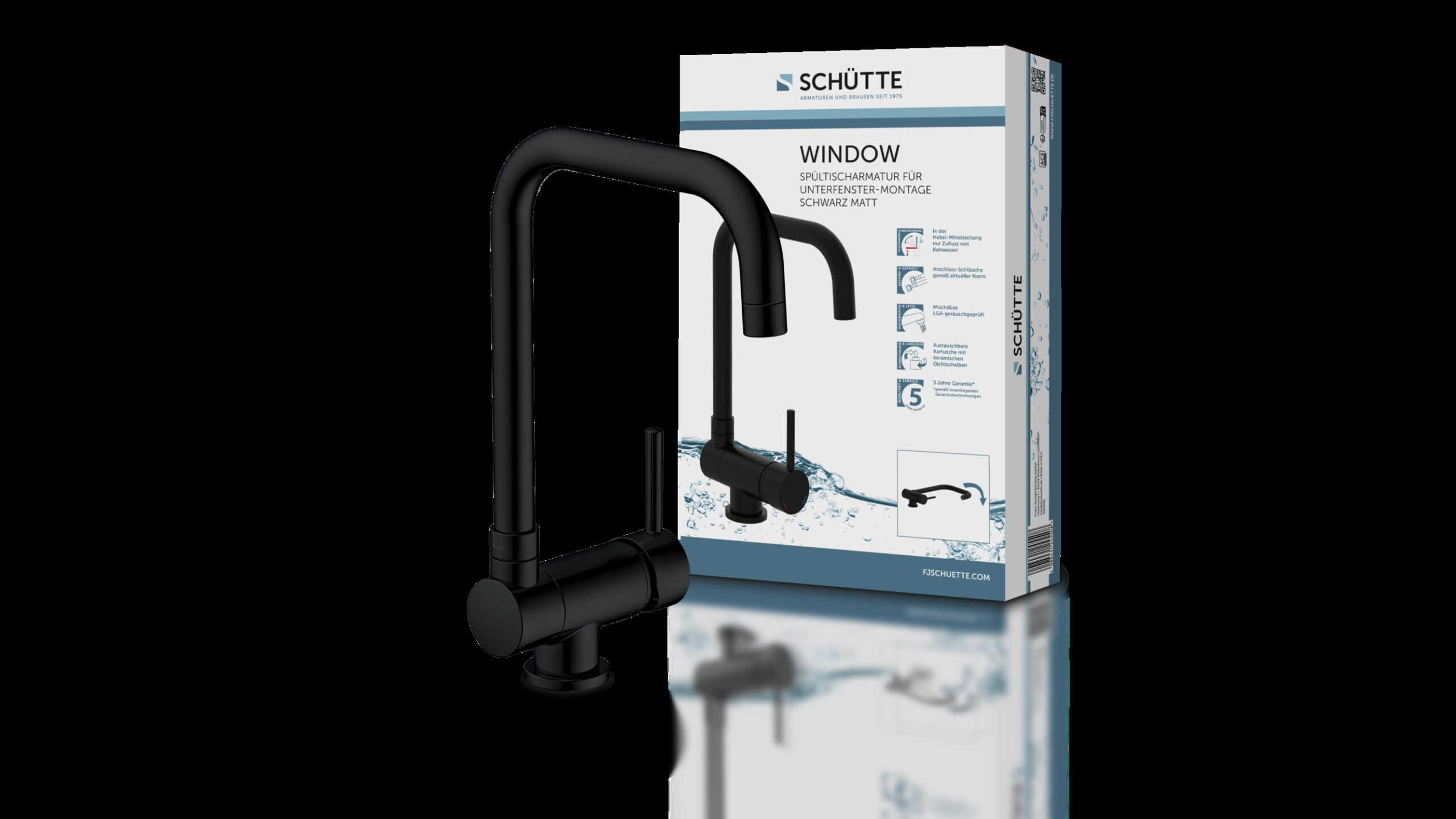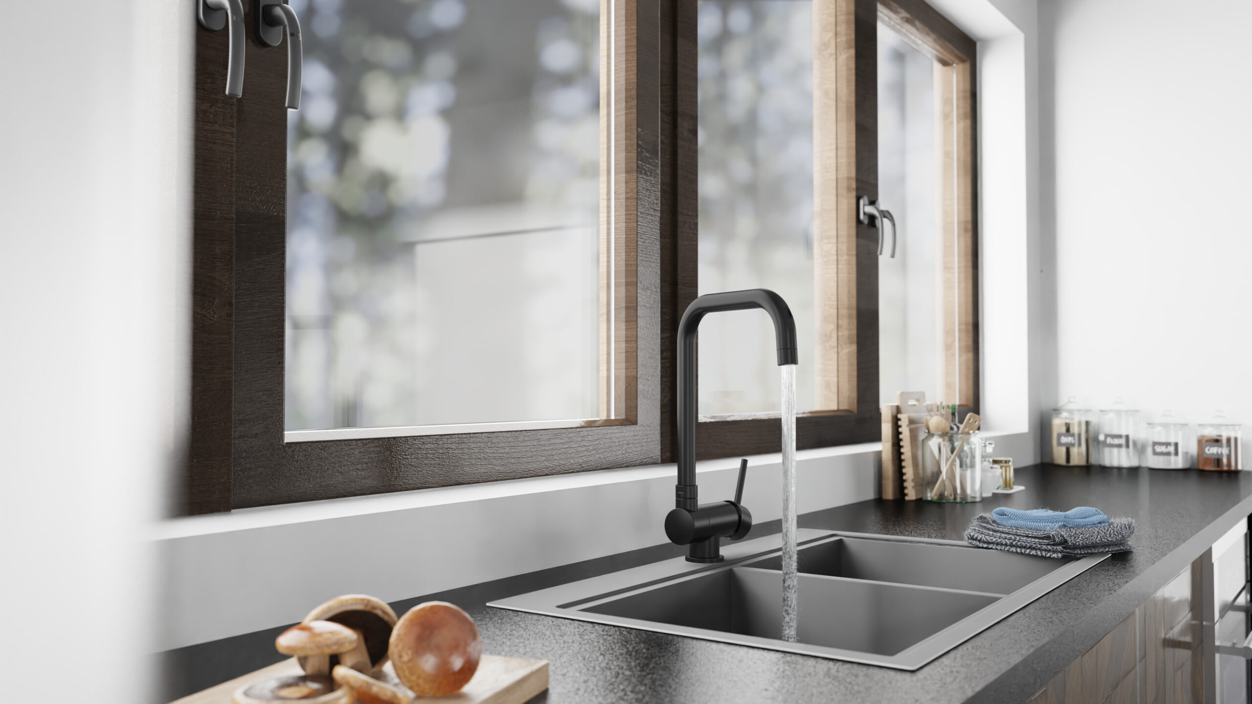 WINDOW Keukenkraan, mat zwart • 360° draaibare uitloop, opvouwbaar • praktische cold-start functie om energie te besparen • geluidsarme, uitwisselbare 40 mm keramische cartridge • extra eenvoudige montage door centrale bevestigingsmoer • flexibele aansluitslangen ca. 500 mm • merk straalregelaar voor een perfect straalbeeld • Garantie: 5 jaar