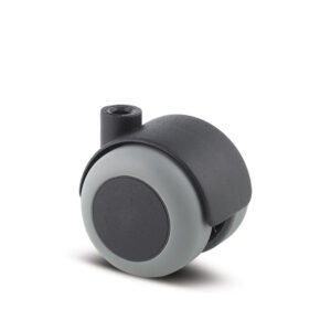 ZWENKWIEL, VORK VAN POLYAMIDE, MET GAT. WIELKERN VAN POLYPROPYLEEN MET GRIJZE NIET-STREPENDE TENTEPRENE THERMOPLASTISCHE RUBBERBAND, WIELNAAF OP GLIJLAGER